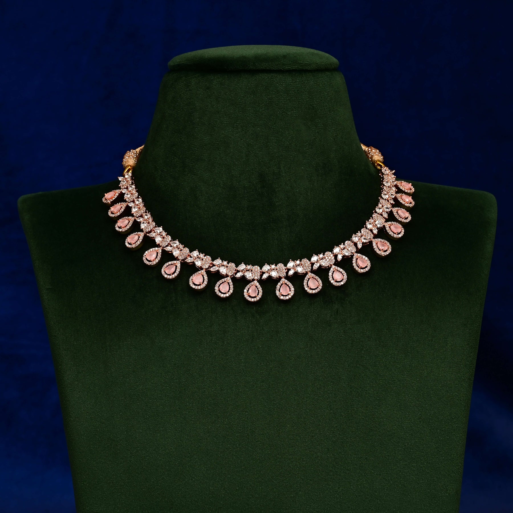 This exquisite CZ Necklace Set features genuine cubic zirconia stones meticulously handcrafted with a luxurious rose gold finish. Each piece is uniquely designed, offering a one-of-a-kind accessory that combines elegance with expert craftsmanship. Perfect for adding a refined touch to any ensemble.