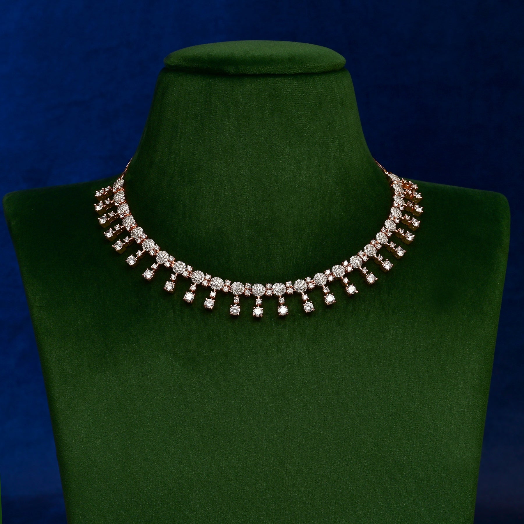 Meticulously hand-crafted, this exclusive CZ necklace set features genuine cubic zirconia stones that brilliantly mimic diamonds. The sophisticated rose gold finish enhances the luxurious appeal of this one-of-a-kind design. Each piece is expertly created to deliver exceptional sparkle and elegance for discerning jewelry connoisseurs.