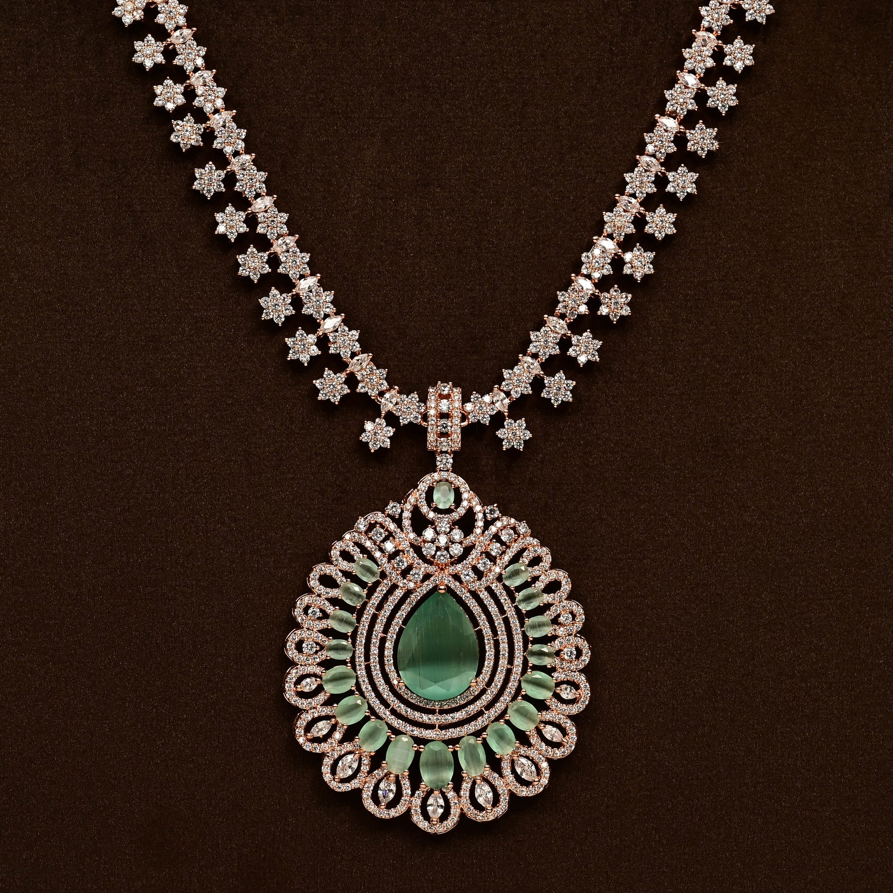 This CZ Necklace Set features high-quality real cubic zirconia stones that beautifully mimic the brilliance of diamonds. Designed with a classy and elegant aesthetic, it offers a sophisticated look perfect for special occasions or enhancing everyday style. The meticulous craftsmanship ensures a timeless accessory that complements any outfit with refined sparkle and grace.
