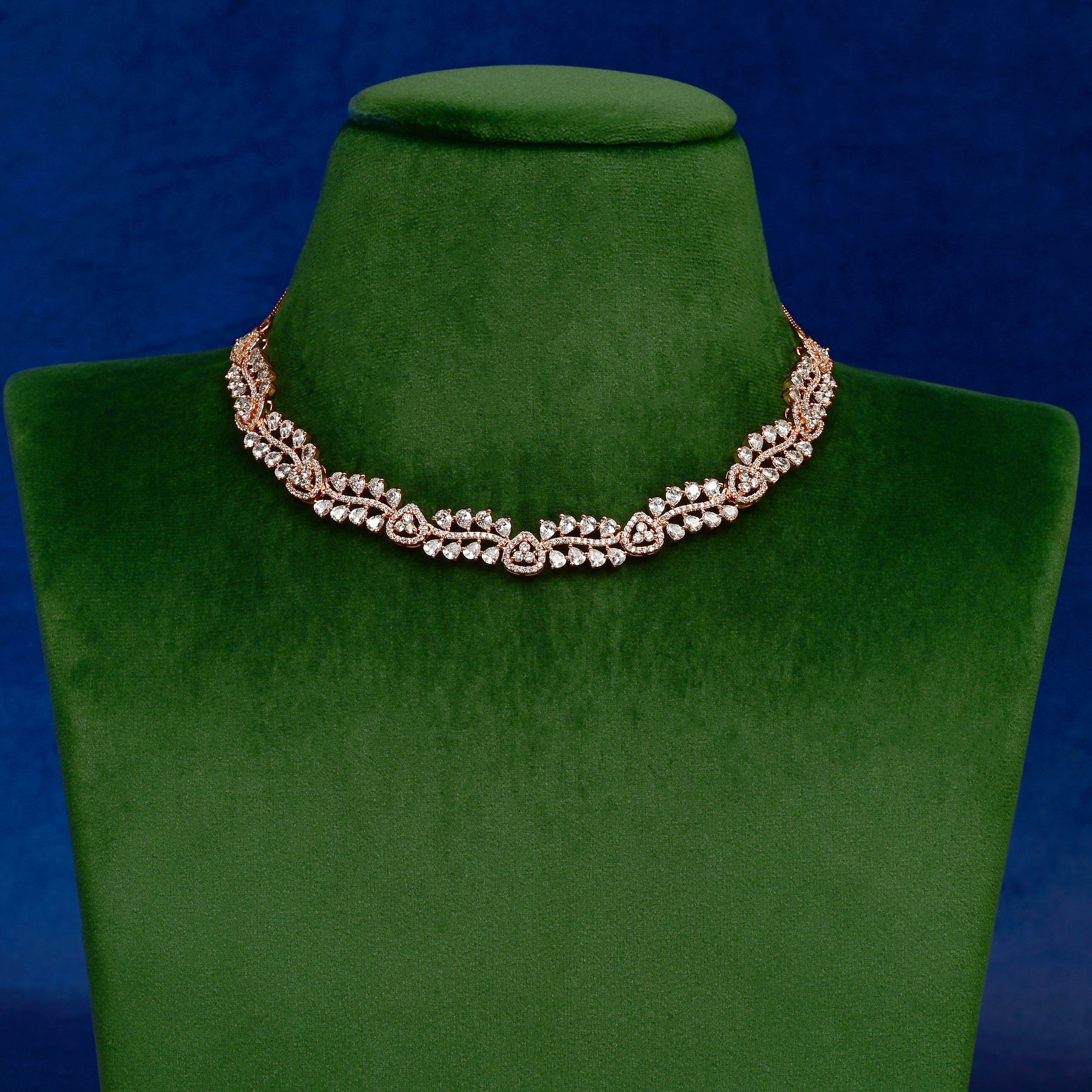 Meticulously hand-crafted, this exclusive CZ necklace set features genuine cubic zirconia stones that brilliantly mimic diamonds. The sophisticated rose gold finish enhances the luxurious appeal of this one-of-a-kind design. Each piece is expertly created to deliver exceptional sparkle and elegance for discerning jewelry connoisseurs.