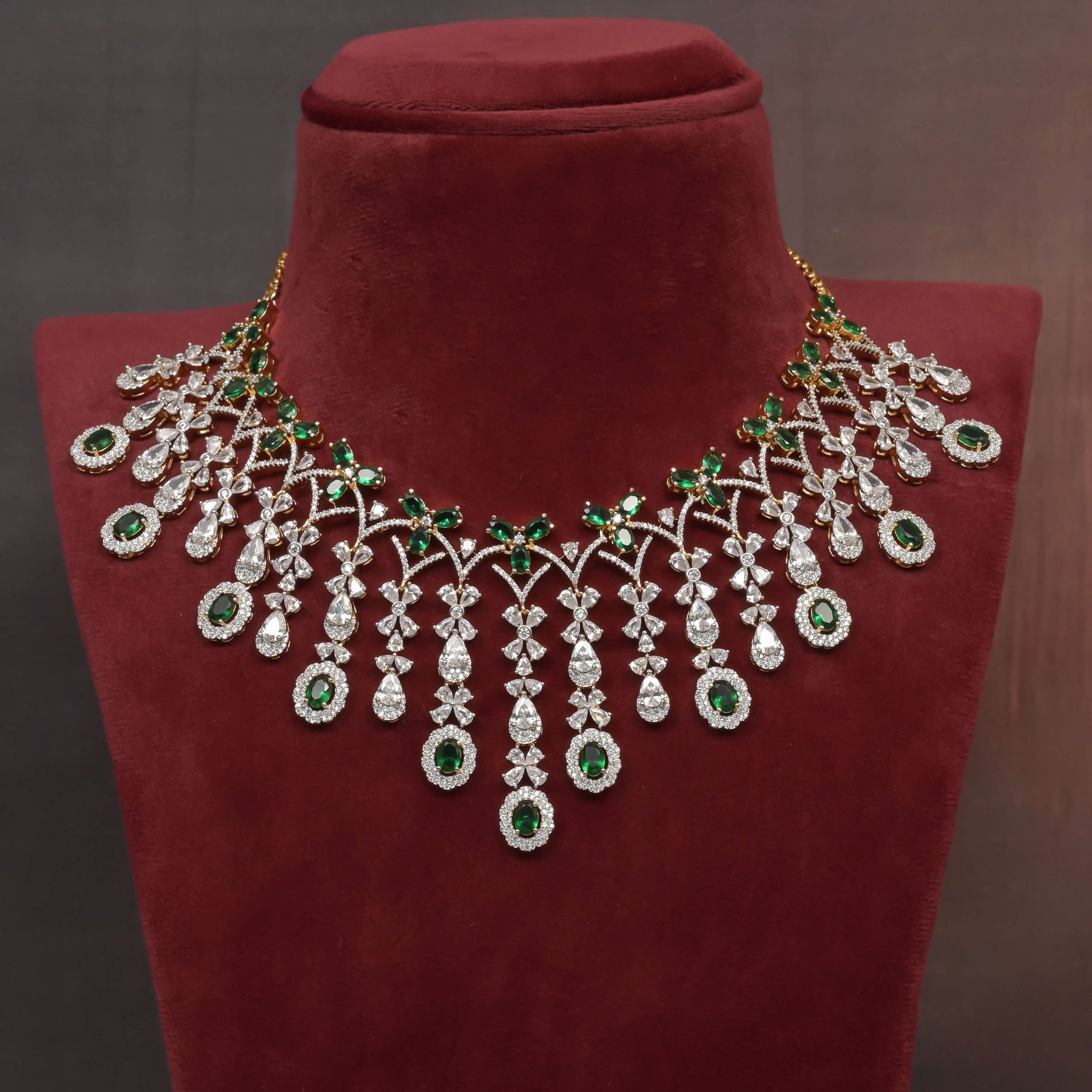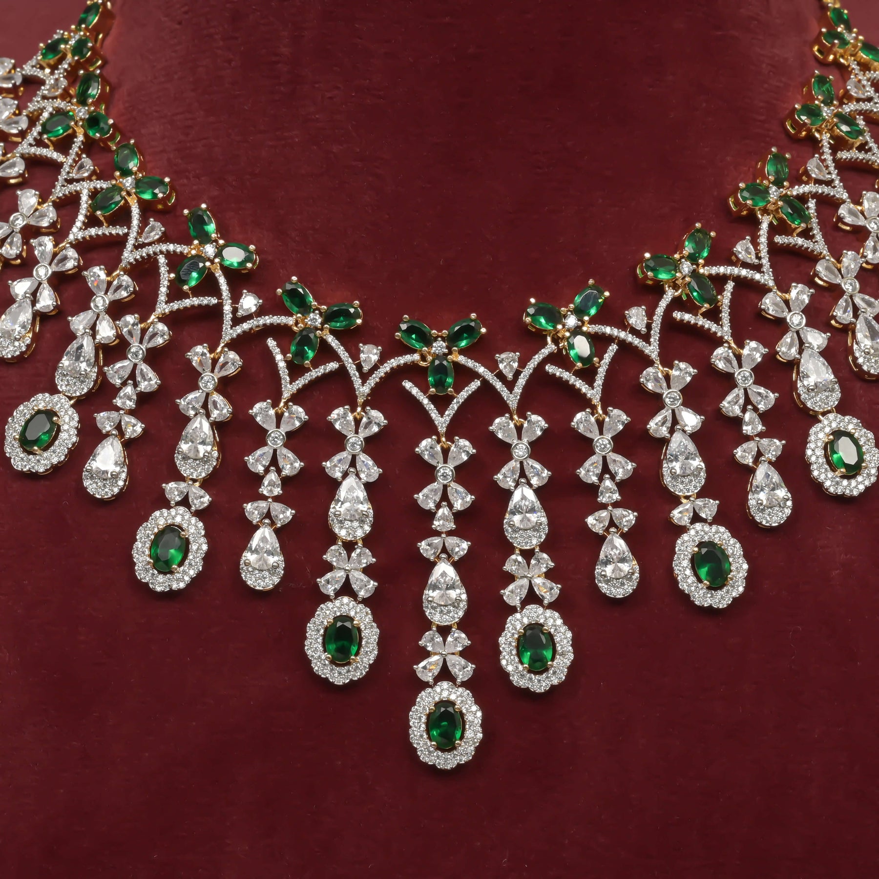 This CZ Necklace Set features expertly handcrafted designs that mimic the brilliance of diamonds through meticulous diamond-like finishing. Adorned with genuine CZ stones, it offers a unique and exclusive style that stands out for its elegance and craftsmanship. Perfect for those seeking the sparkle of diamonds with exceptional value and distinctive appeal.