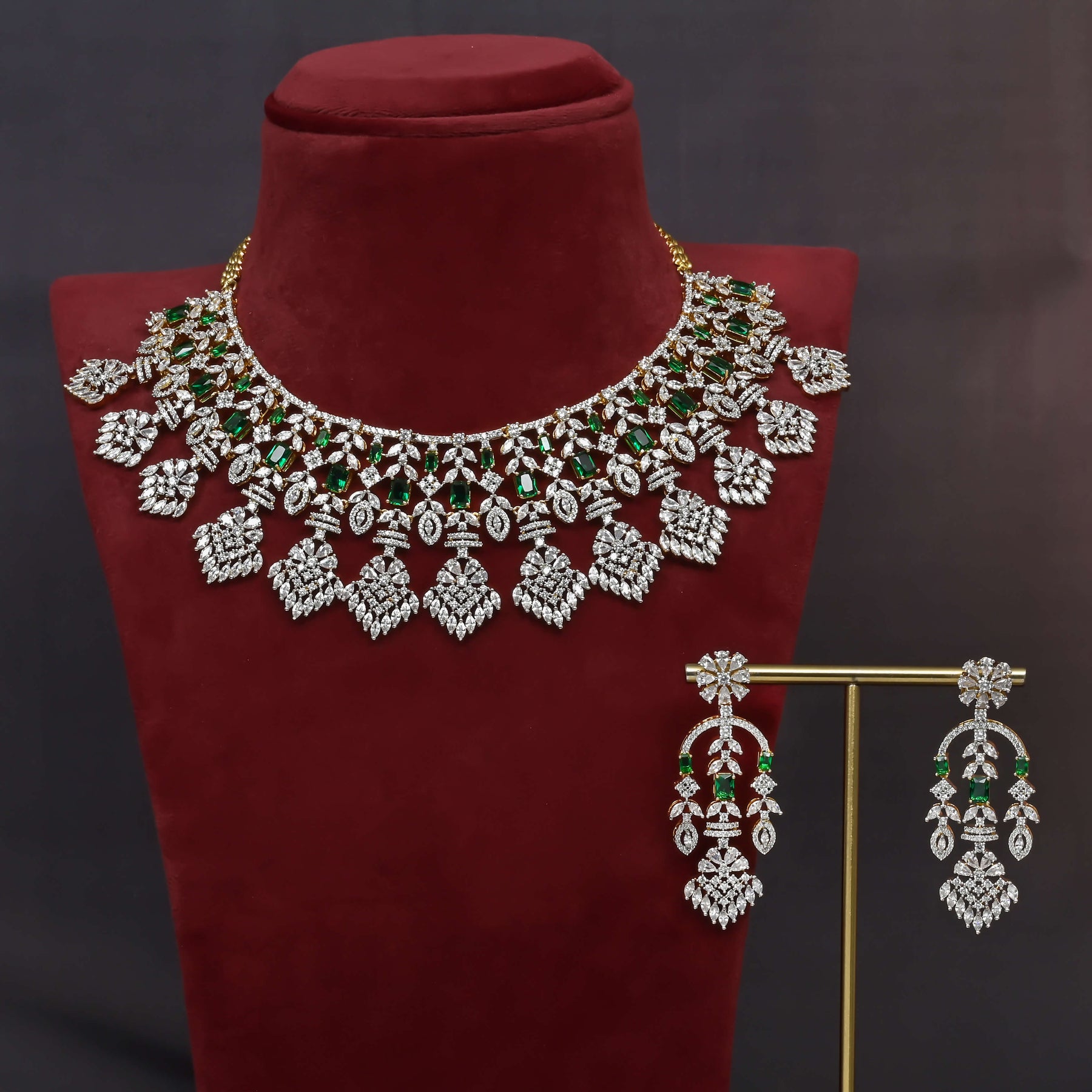 This CZ Necklace Set features expertly handcrafted designs with real CZ stones, offering a stunning diamond-like appearance enhanced by meticulous diamond finishing. Each piece is uniquely crafted, ensuring an exclusive and elegant addition to your jewelry collection. Perfect for those seeking the brilliance of diamonds with exceptional craftsmanship.