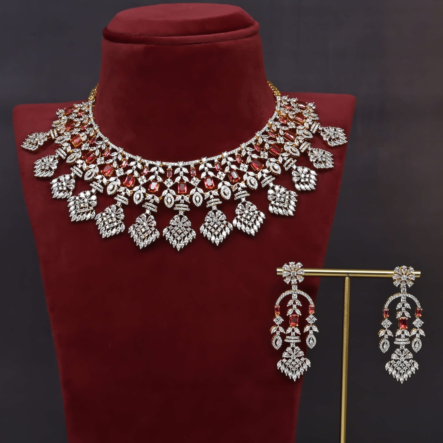 This CZ Necklace Set features expertly handcrafted designs with real CZ stones, offering a stunning diamond-like appearance enhanced by meticulous diamond finishing. Each piece is uniquely crafted, ensuring an exclusive and elegant addition to your jewelry collection. Perfect for those seeking the brilliance of diamonds with exceptional craftsmanship.