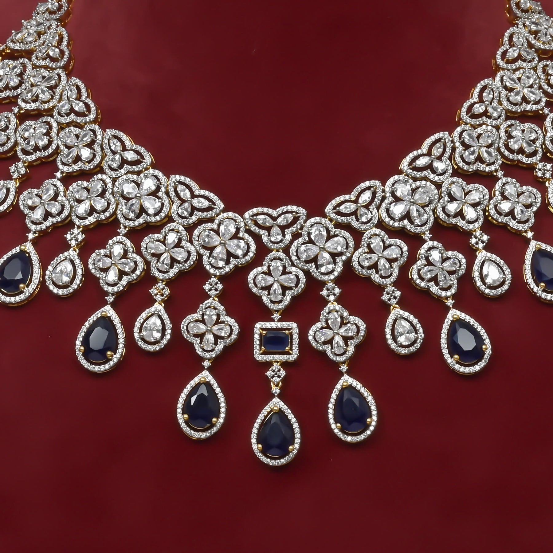 This CZ Necklace Set features expertly handcrafted designs that mimic the brilliance of diamonds through meticulous diamond-like finishing. Made with genuine CZ stones, each piece offers a unique and exclusive style, combining elegance with exceptional craftsmanship for a sophisticated look.