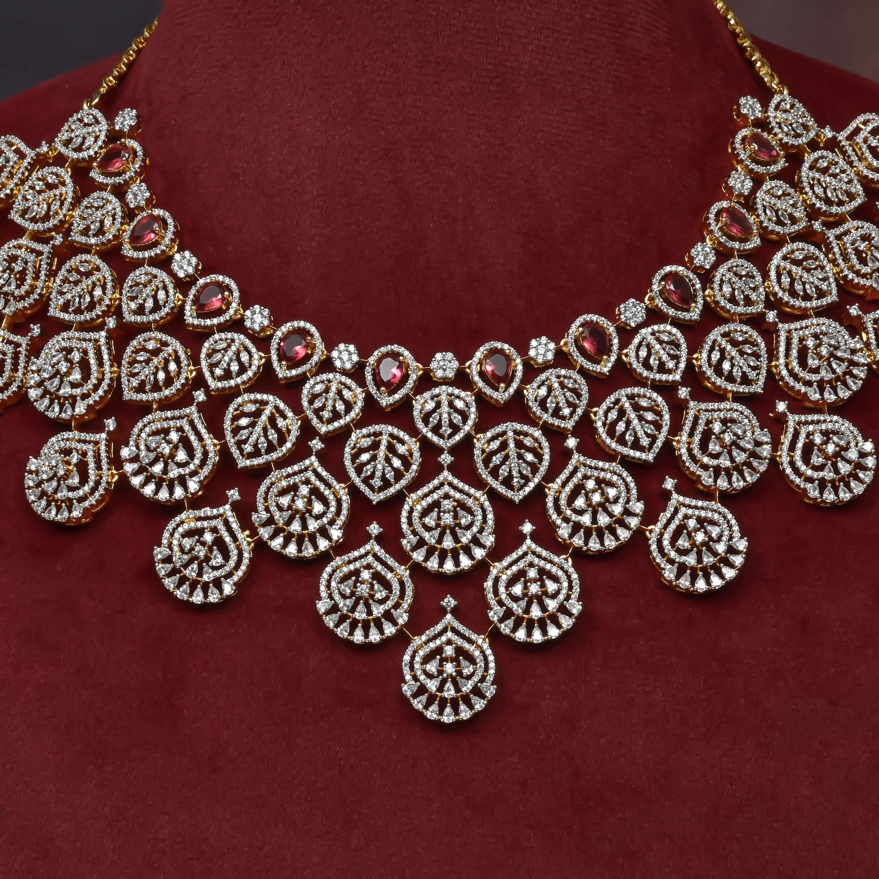Elevate your elegance with this expertly handcrafted CZ Necklace Set, featuring genuine CZ stones that mimic the brilliance of diamonds. Each piece is meticulously finished to achieve a diamond-like sparkle, showcasing an exclusive, one-of-a-kind design that stands out with refined craftsmanship and timeless appeal. Perfect for those seeking luxury without compromise.