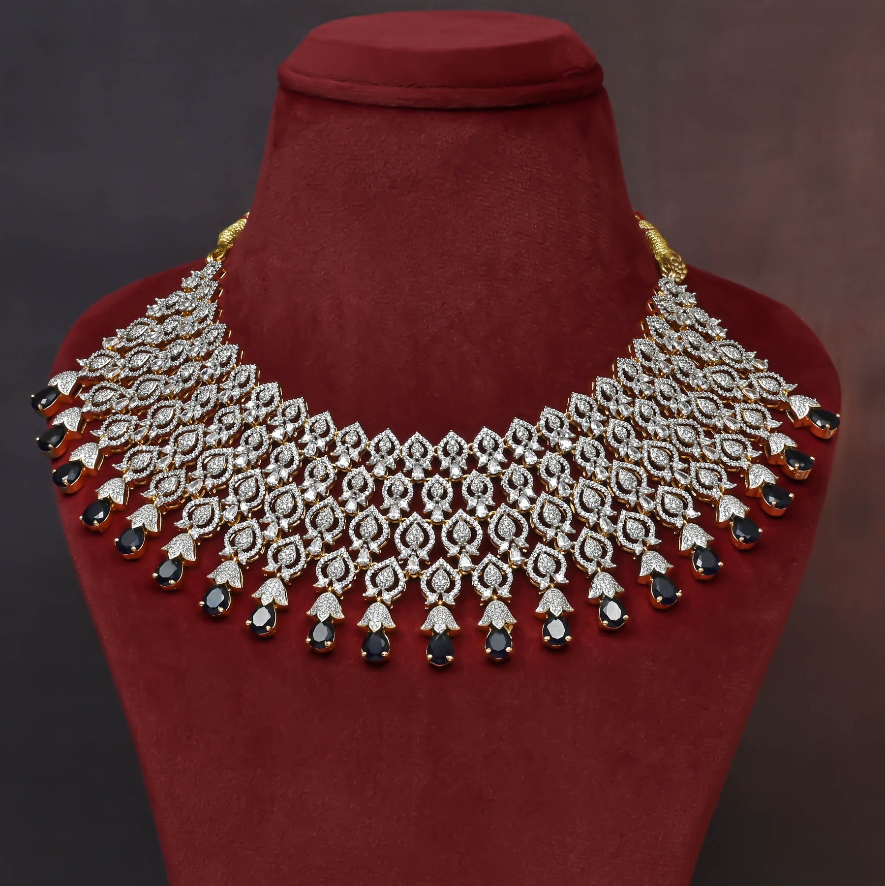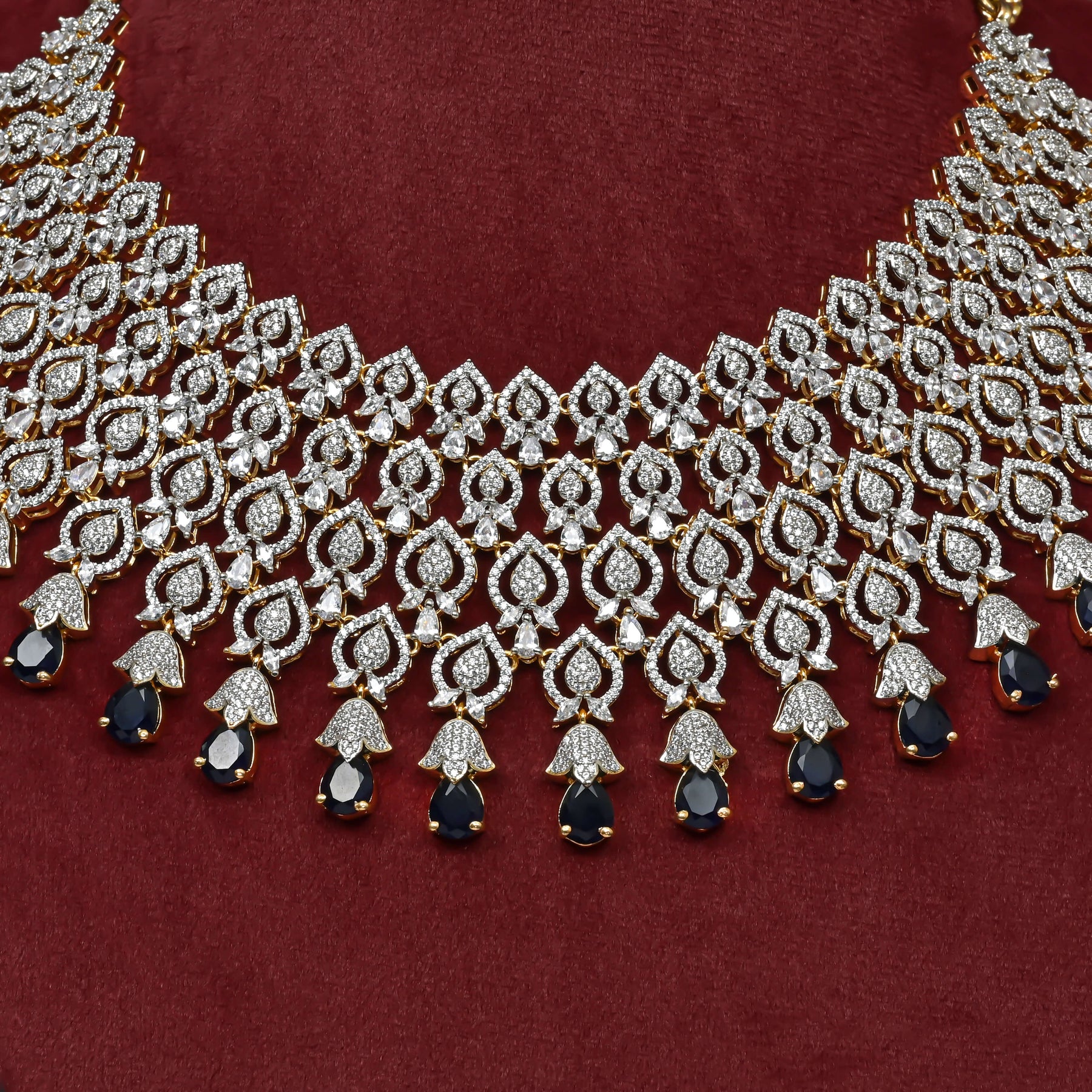 Elevate your elegance with this expertly handcrafted CZ Necklace Set, featuring genuine cubic zirconia stones that mimic the brilliance of diamonds. Each piece is meticulously finished to achieve a diamond-like sparkle, showcasing an exclusive, one-of-a-kind design that stands out in any collection. Perfect for those who appreciate refined craftsmanship and timeless beauty.