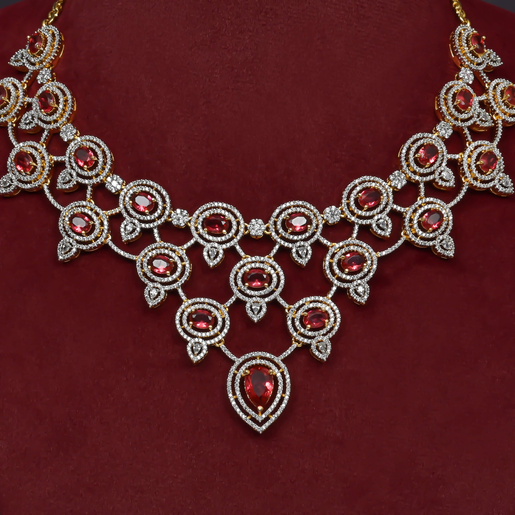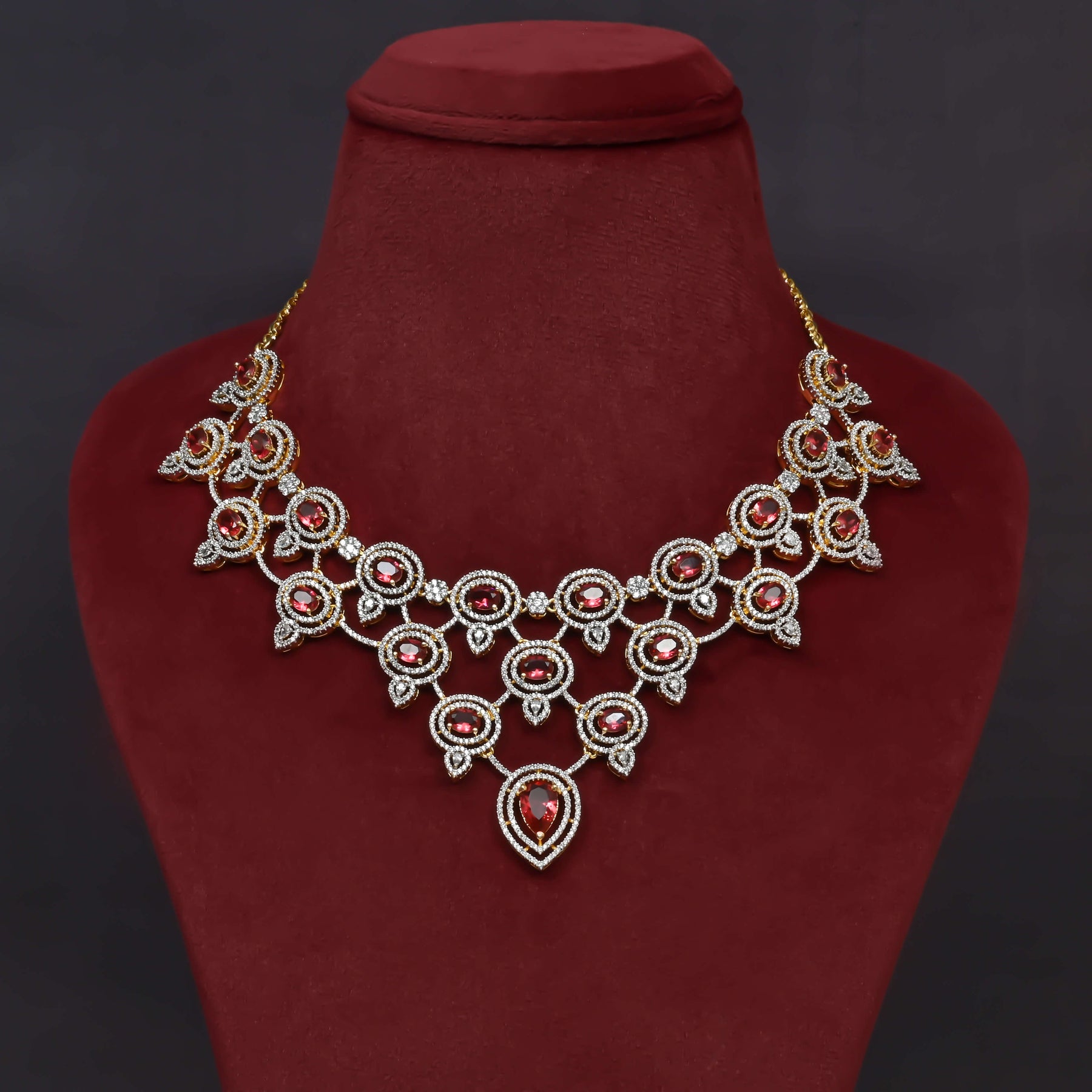 This CZ Necklace Set features expertly handcrafted designs that mimic the brilliance of diamonds with meticulous diamond-like finishing. Made with genuine CZ stones, each piece offers a unique and exclusive style, combining elegance with exceptional craftsmanship for a sophisticated look.