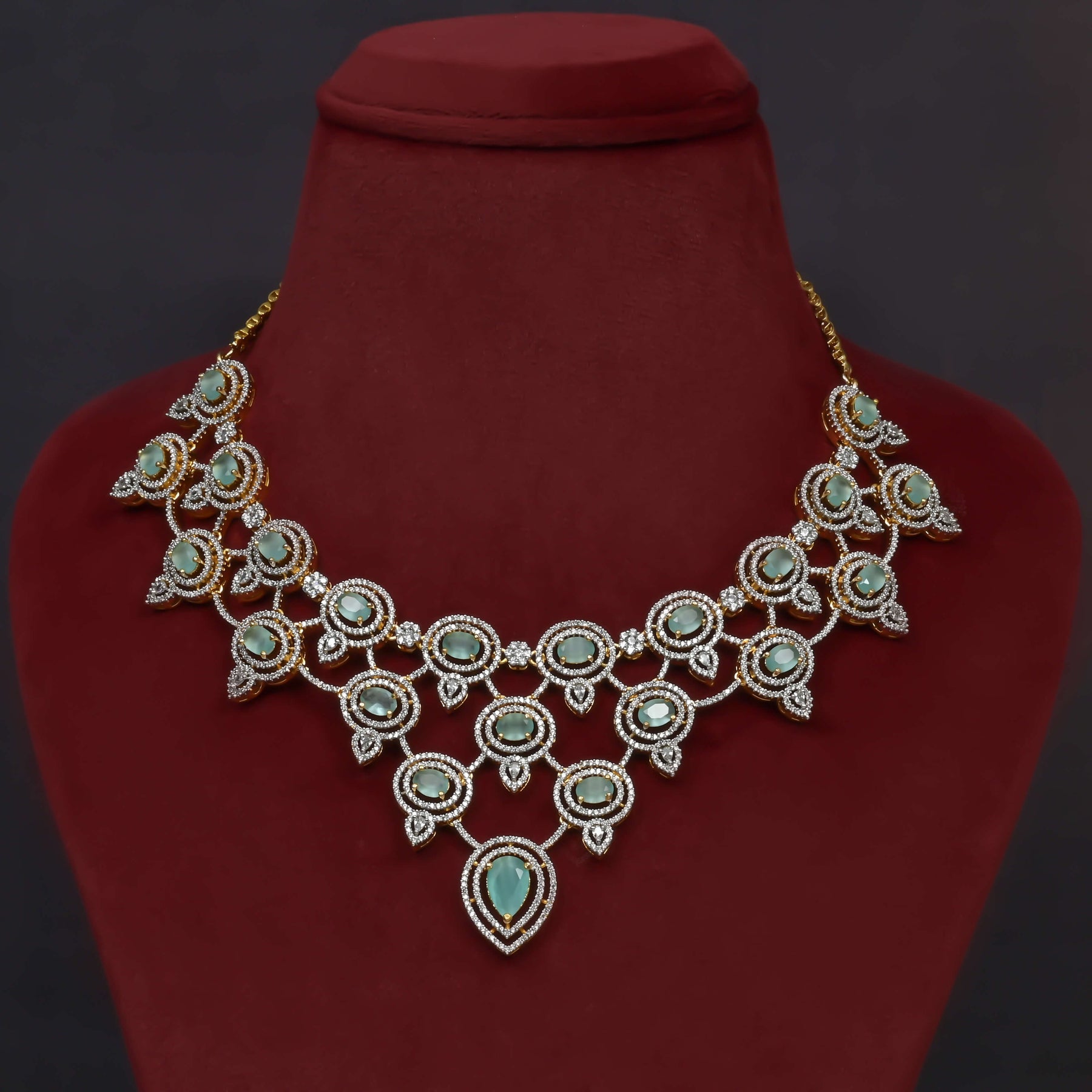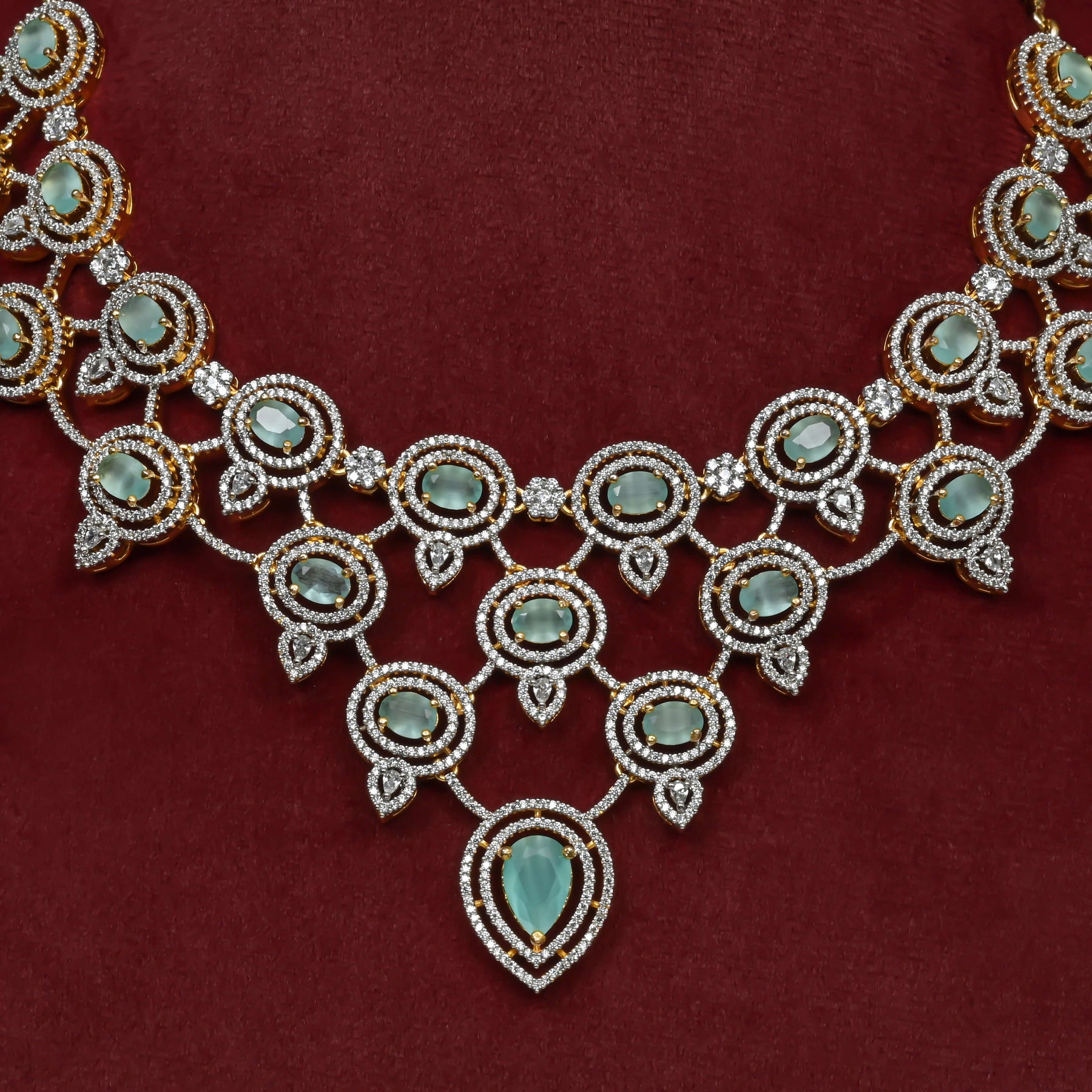 Elevate your elegance with this expertly handcrafted CZ Necklace Set, featuring genuine CZ stones that mimic the brilliance of diamonds. Each piece is meticulously finished to achieve a diamond-like sparkle, showcasing an exclusive, one-of-a-kind design that stands out with refined craftsmanship. Perfect for those seeking sophisticated style with lasting shine.