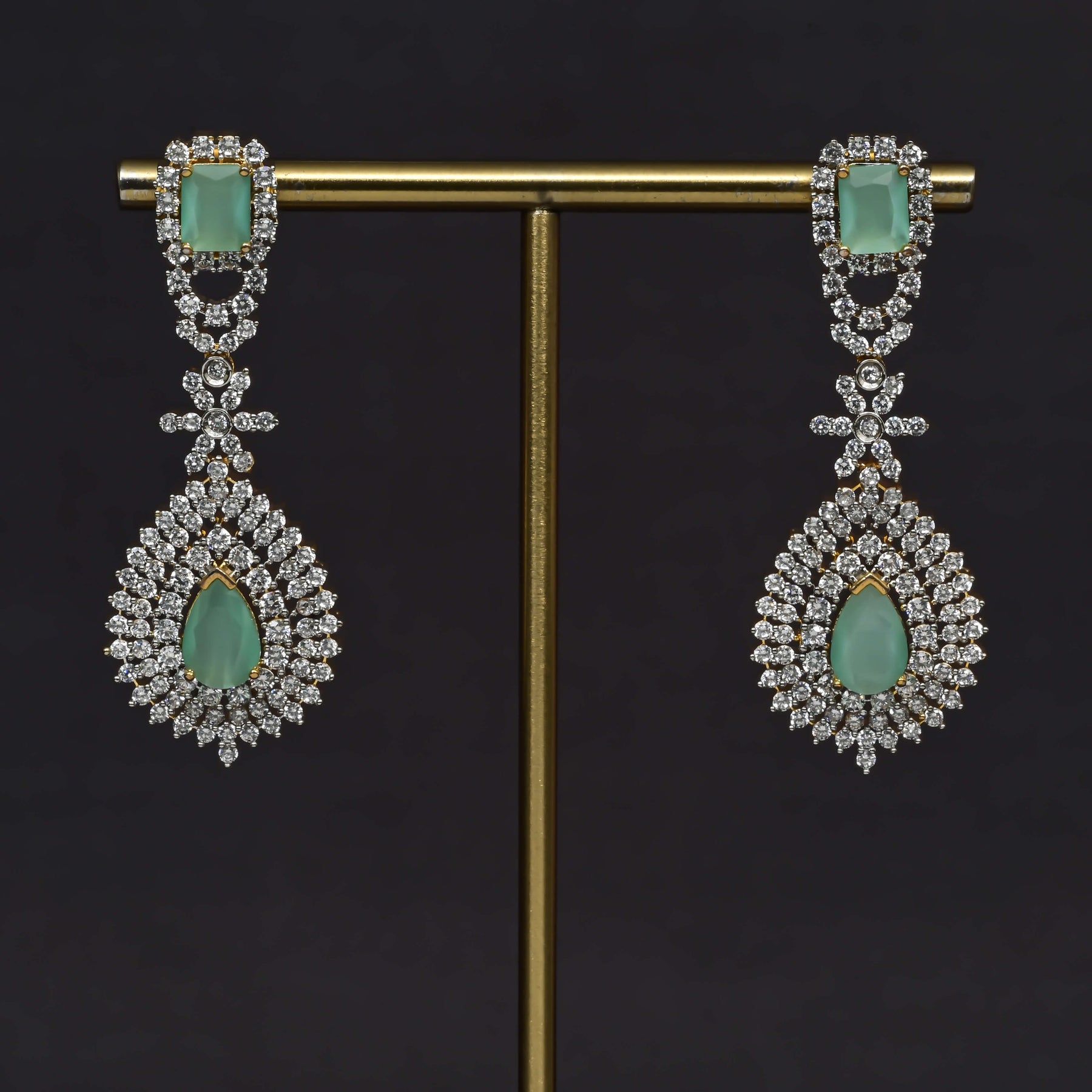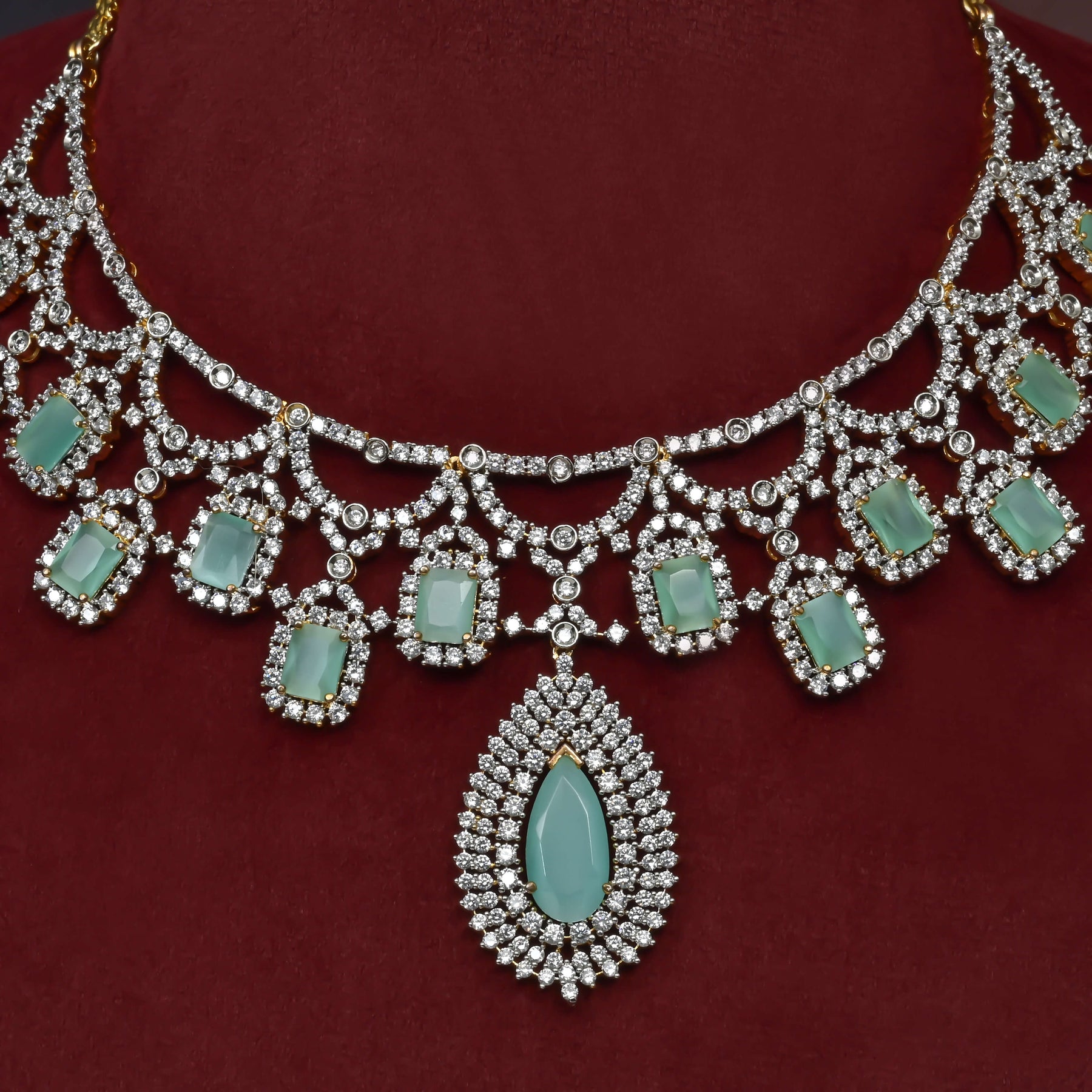 This CZ Necklace Set features expertly handcrafted designs that mimic the brilliance of diamonds through meticulous diamond-like finishing. Made with genuine CZ stones, each piece offers a unique and exclusive style, combining elegance with exceptional craftsmanship for a sophisticated look.