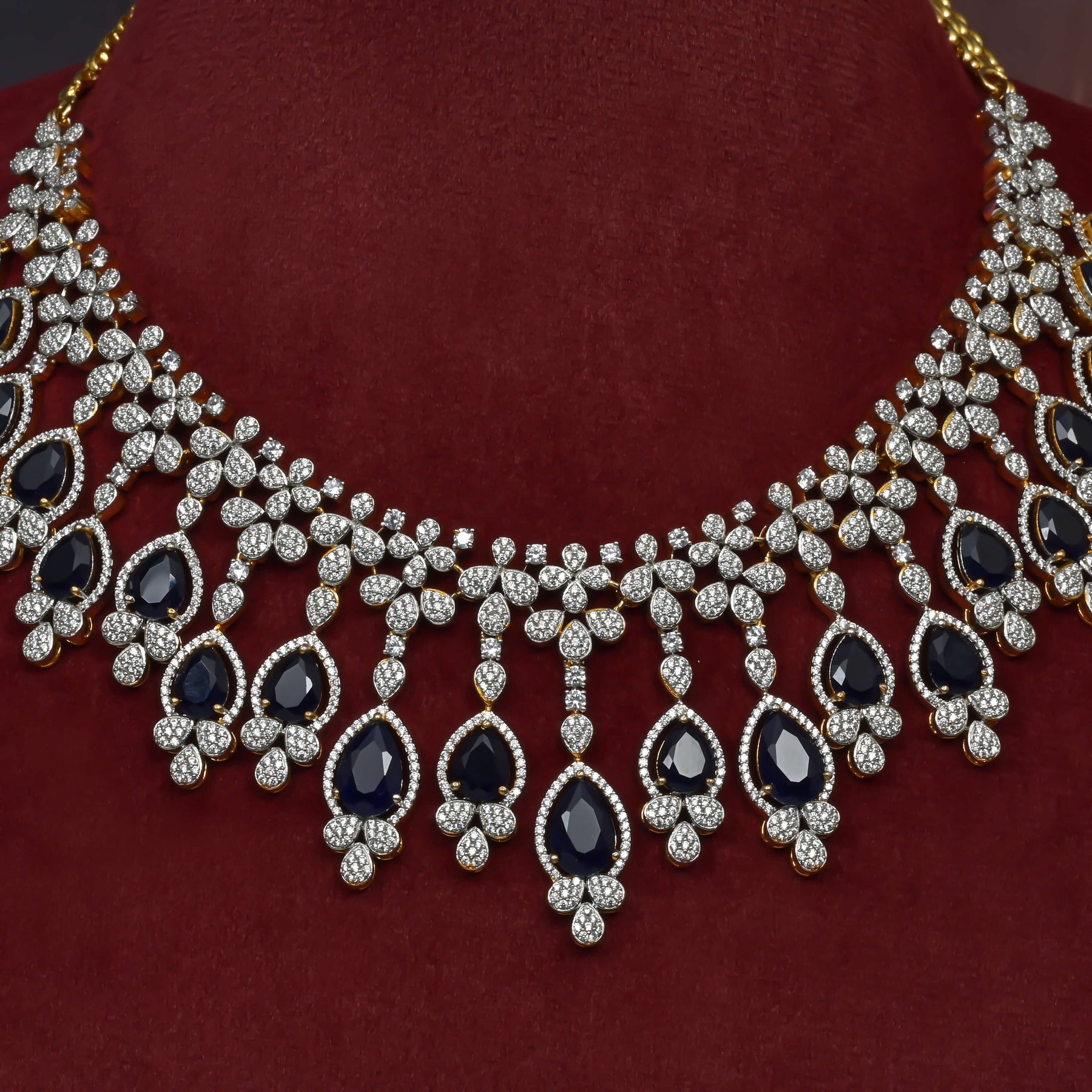 This CZ Necklace Set features expertly handcrafted designs that mimic the brilliance of diamonds through meticulous diamond-like finishing. Made with genuine CZ stones, it offers a unique and exclusive style that stands out for its craftsmanship and elegance. Perfect for those seeking the sparkle of diamonds with exceptional quality and distinctive appeal.