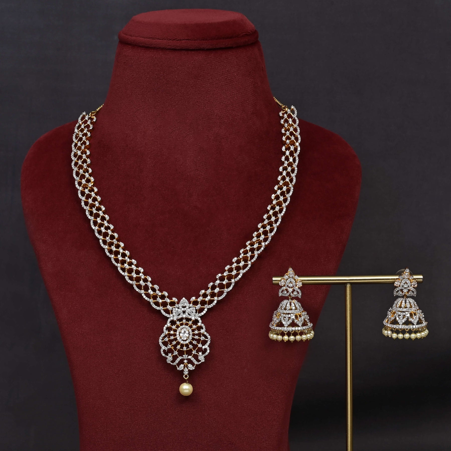 This CZ Necklace Set features expertly handcrafted designs with real CZ stones, offering a stunning diamond-like appearance enhanced by meticulous diamond finishing. Each piece is uniquely crafted, ensuring an exclusive and elegant addition to your jewelry collection. Perfect for those seeking sophisticated sparkle without compromise.