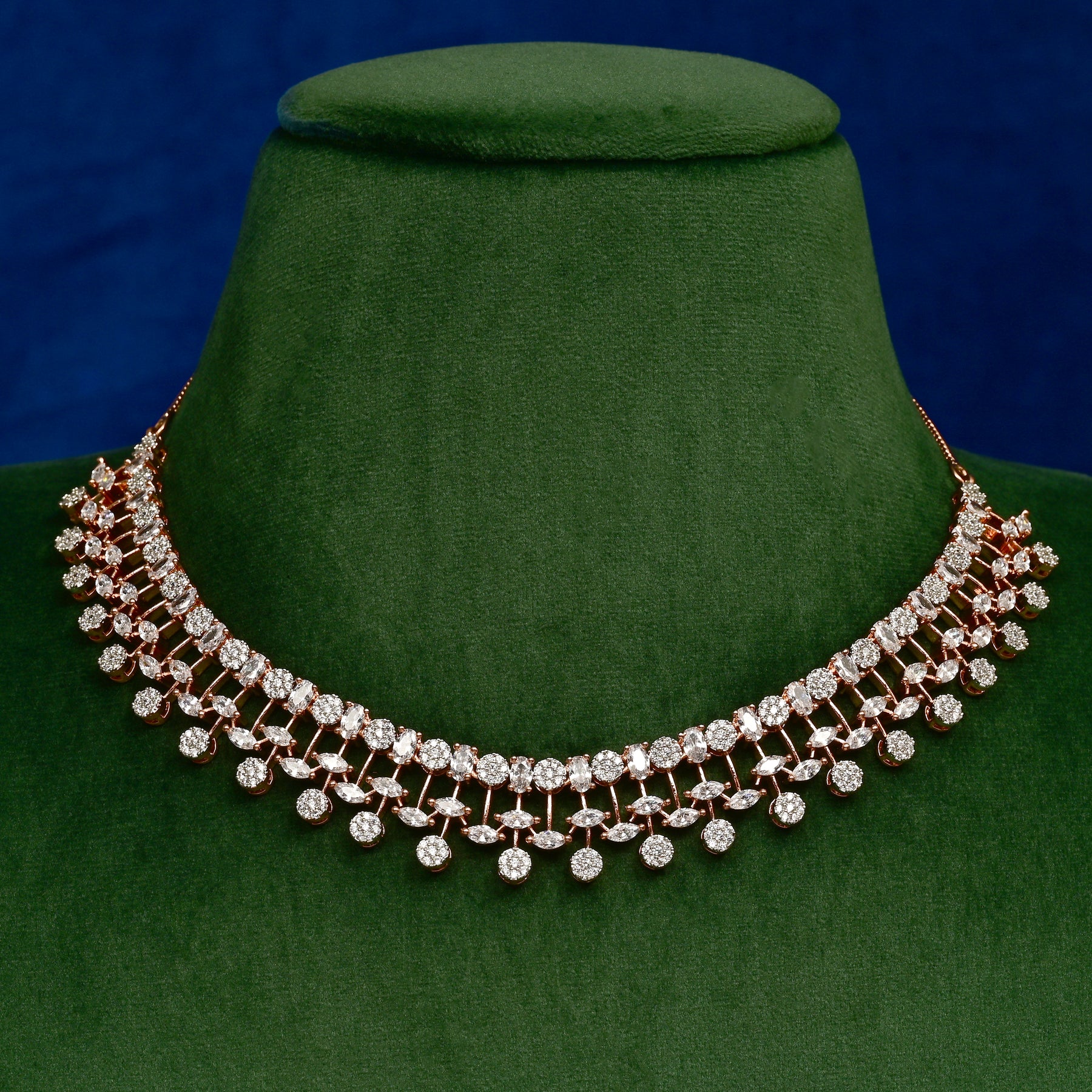 Meticulously hand-crafted, this exclusive CZ necklace set features genuine cubic zirconia stones that brilliantly mimic diamonds. The sophisticated rose gold finish enhances the luxurious appeal of this one-of-a-kind design. Each piece is expertly created to deliver exceptional sparkle and elegance for discerning jewelry connoisseurs.