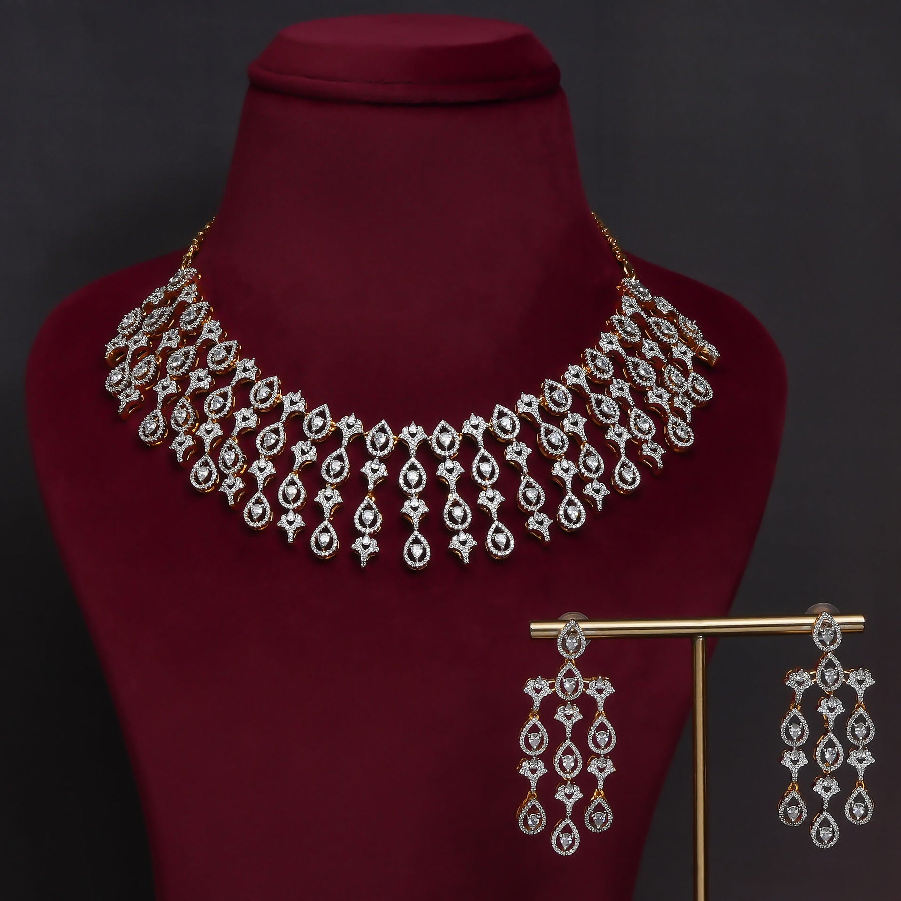 This CZ Necklace Set features expertly hand-crafted designs that mimic the brilliance of diamonds through meticulous diamond-like finishing. Adorned with genuine CZ stones, each piece offers a unique, exclusive style that stands out for its exceptional craftsmanship and radiant sparkle. Perfect for those seeking the elegance of diamonds with the assurance of quality and exclusivity.