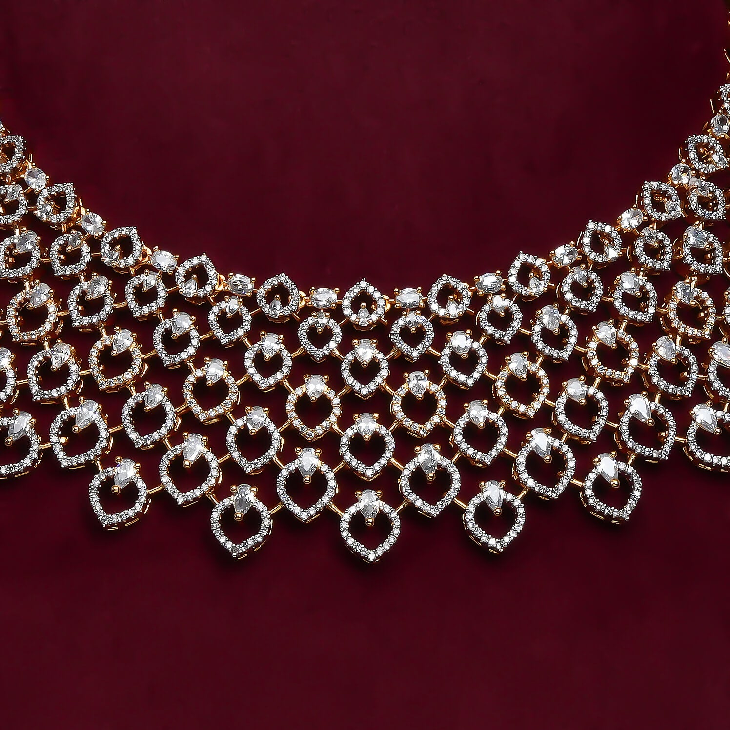 This CZ Necklace Set features expertly handcrafted designs that mimic the brilliance of diamonds through meticulous diamond-like finishing. Made with genuine CZ stones, it offers a unique and exclusive style that stands out for its craftsmanship and elegance. Perfect for those seeking the sparkle of diamonds with exceptional quality and distinctive design.
