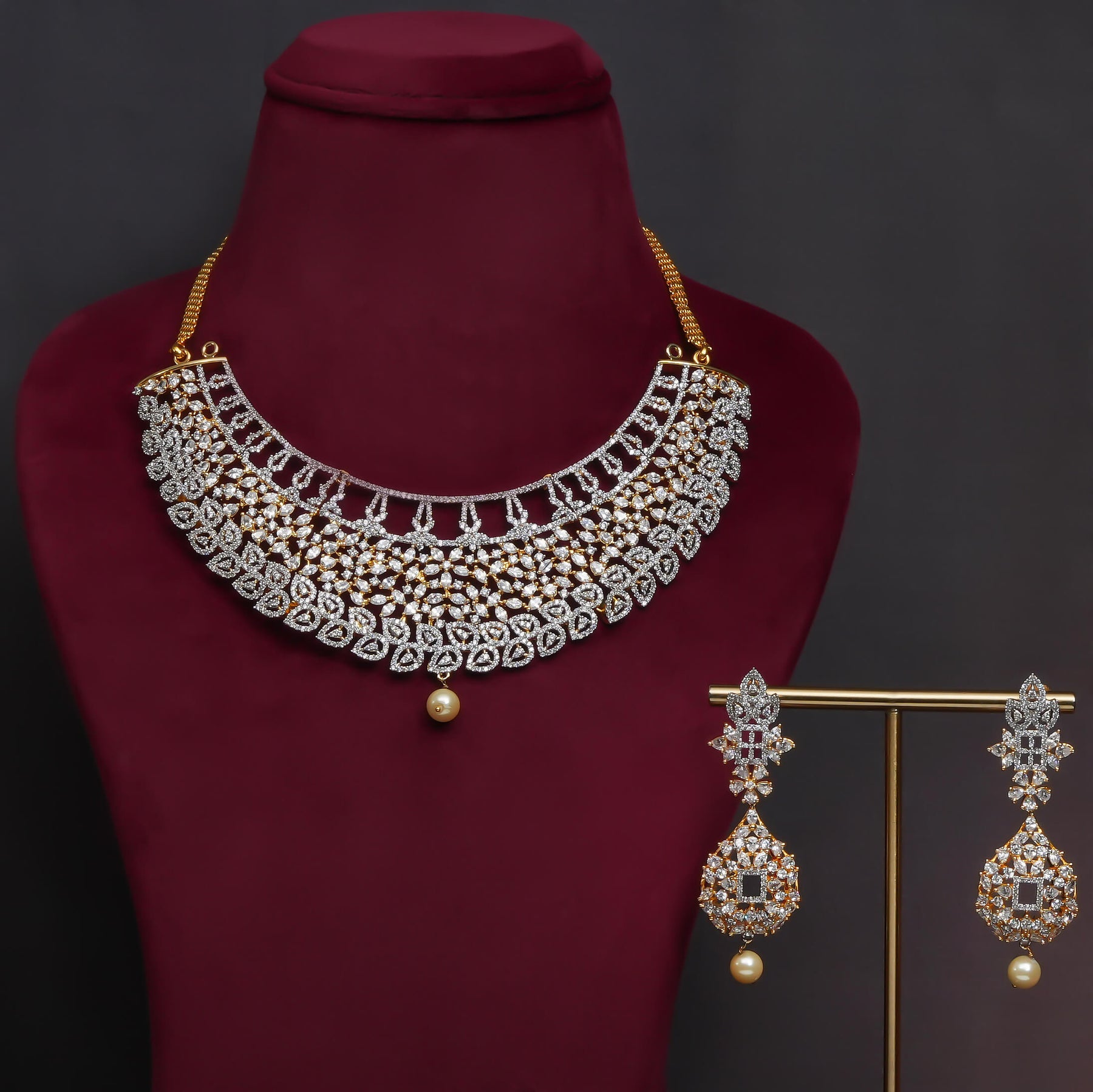 This CZ Necklace Set features expertly handcrafted designs that mimic the brilliance of diamonds through meticulous diamond-like finishing. Adorned with genuine CZ stones, each piece offers a unique, exclusive style that elevates any ensemble with timeless elegance and sparkle.