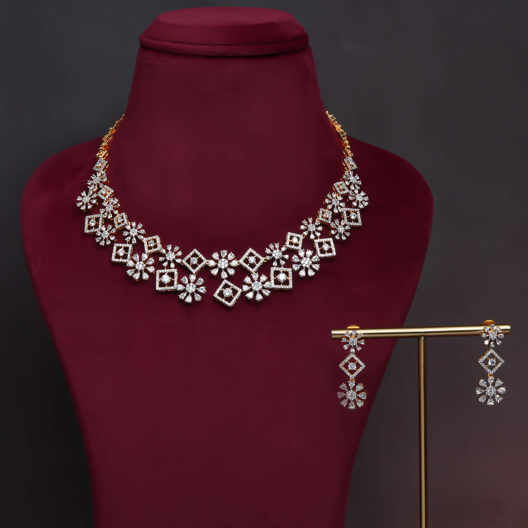 Elevate your elegance with this expertly handcrafted CZ Necklace Set, featuring genuine CZ stones that mimic the brilliance of diamonds. Each piece is meticulously finished to achieve a diamond-like sparkle, showcasing an exclusive, one-of-a-kind design. Perfect for those who appreciate refined craftsmanship and timeless beauty.