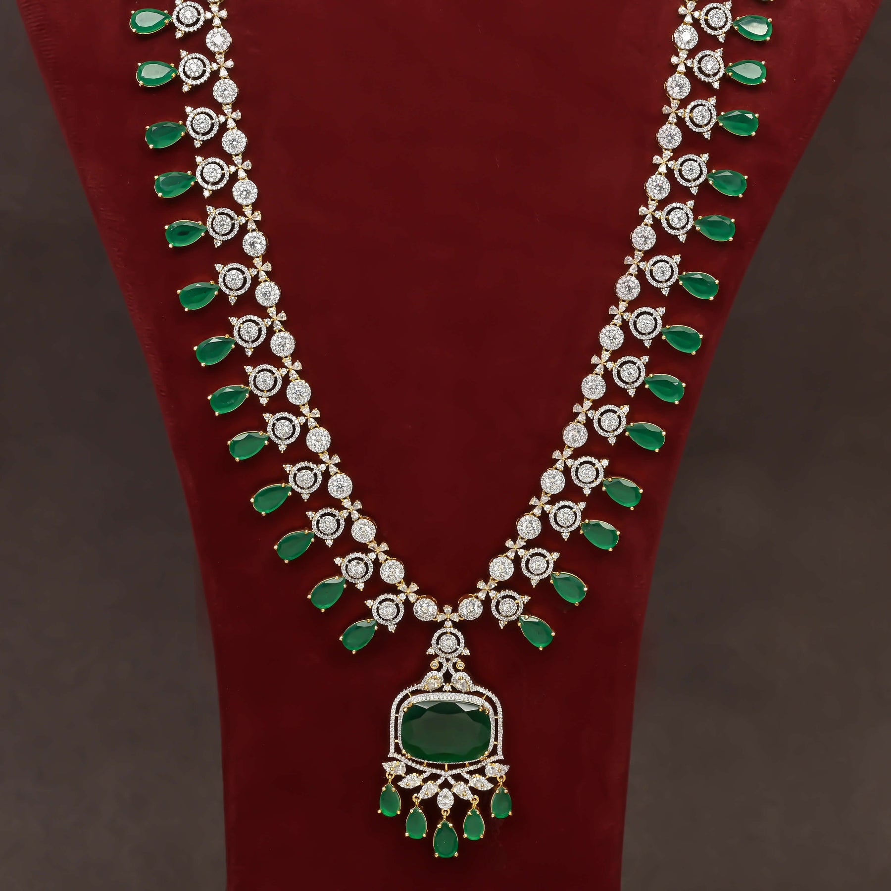 Elevate your collection with this exquisite CZ Necklace Set, meticulously handcrafted to deliver timeless elegance. Featuring authentic cubic zirconia stones paired with semi-precious emerald accents, this piece captures the regal sophistication of fine jewelry at an accessible price point. Each set showcases a distinctive one-of-a-kind design that reflects superior craftsmanship and attention to detail. The harmonious blend of brilliant CZ sparkle and the deep, verdant allure of emerald creates a striking visual impact suitable for both special occasions and refined everyday wear. A testament to artisanal excellence, this necklace set stands as a versatile investment piece for the discerning jewelry enthusiast.
