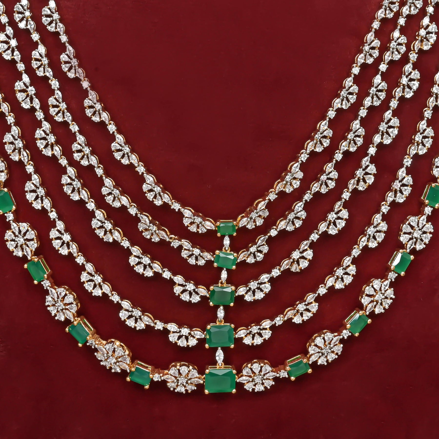 Elevate your collection with this exquisite CZ Necklace Set, meticulously handcrafted to deliver timeless elegance. Featuring authentic cubic zirconia stones paired with semi-precious emerald accents, this piece combines brilliance with natural beauty. The intricate design exudes a regal aesthetic, perfect for special occasions or refined everyday wear. Each set is uniquely crafted, ensuring you own a one-of-a-kind treasure that reflects superior artisanal craftsmanship and sophisticated style.