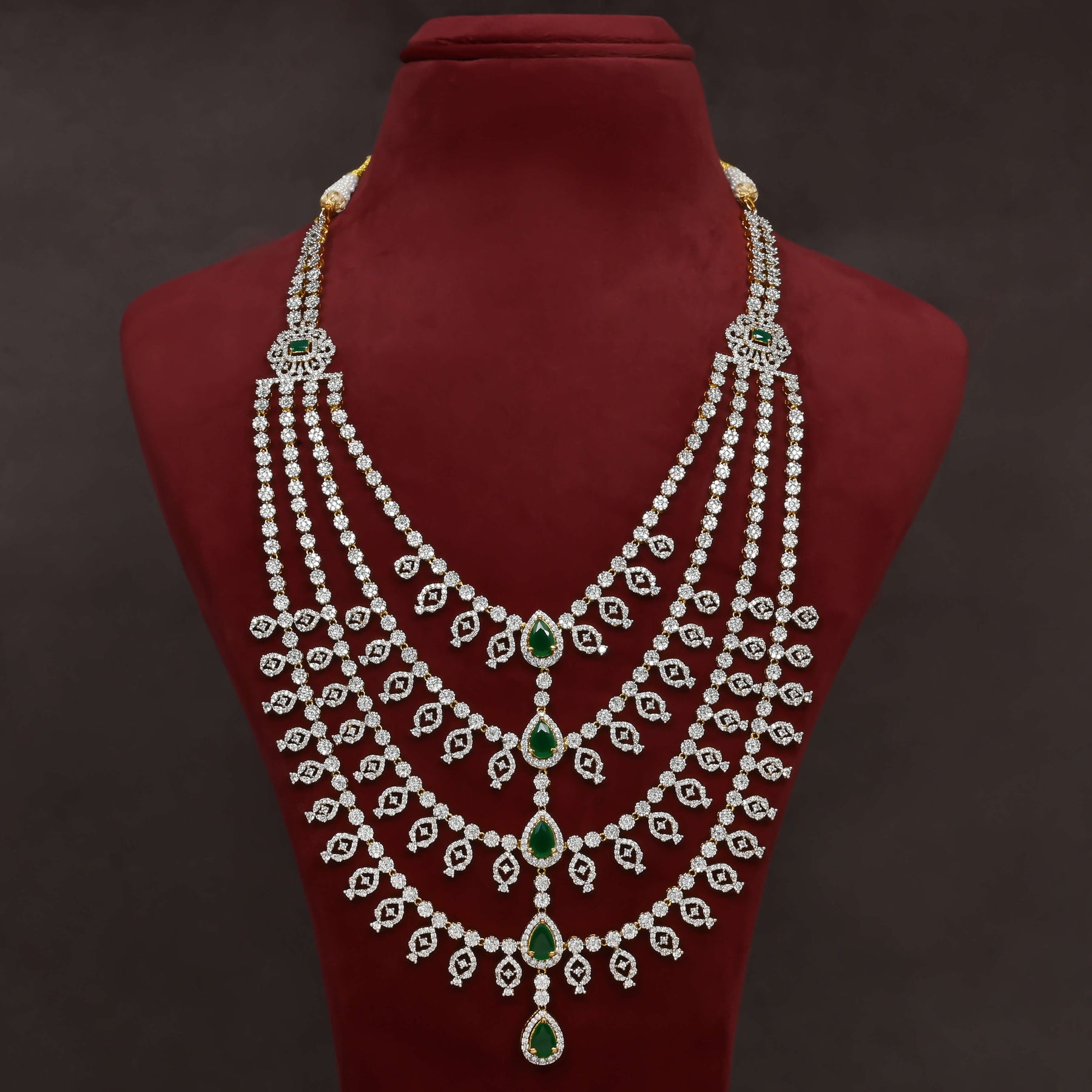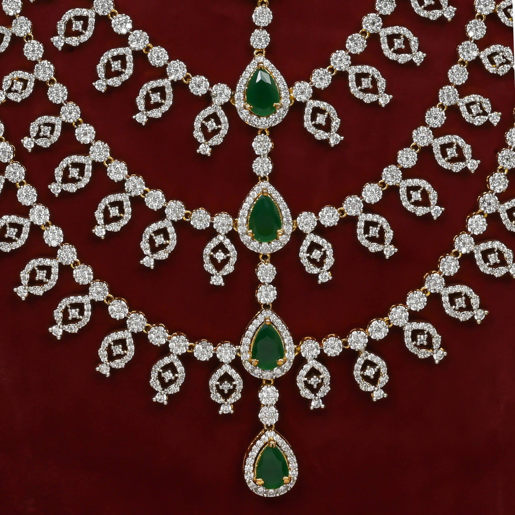 Elevate your collection with this exquisite CZ Necklace Set, featuring authentic cubic zirconia stones paired with semi-precious emerald accents. Each piece is meticulously handcrafted to deliver a regal aesthetic with distinctive, one-of-a-kind design elements. The brilliant sparkle of premium CZ stones combined with the rich green hues of emerald creates a sophisticated statement piece suitable for special occasions or elevated everyday wear. This artisanal creation showcases superior craftsmanship and timeless elegance.