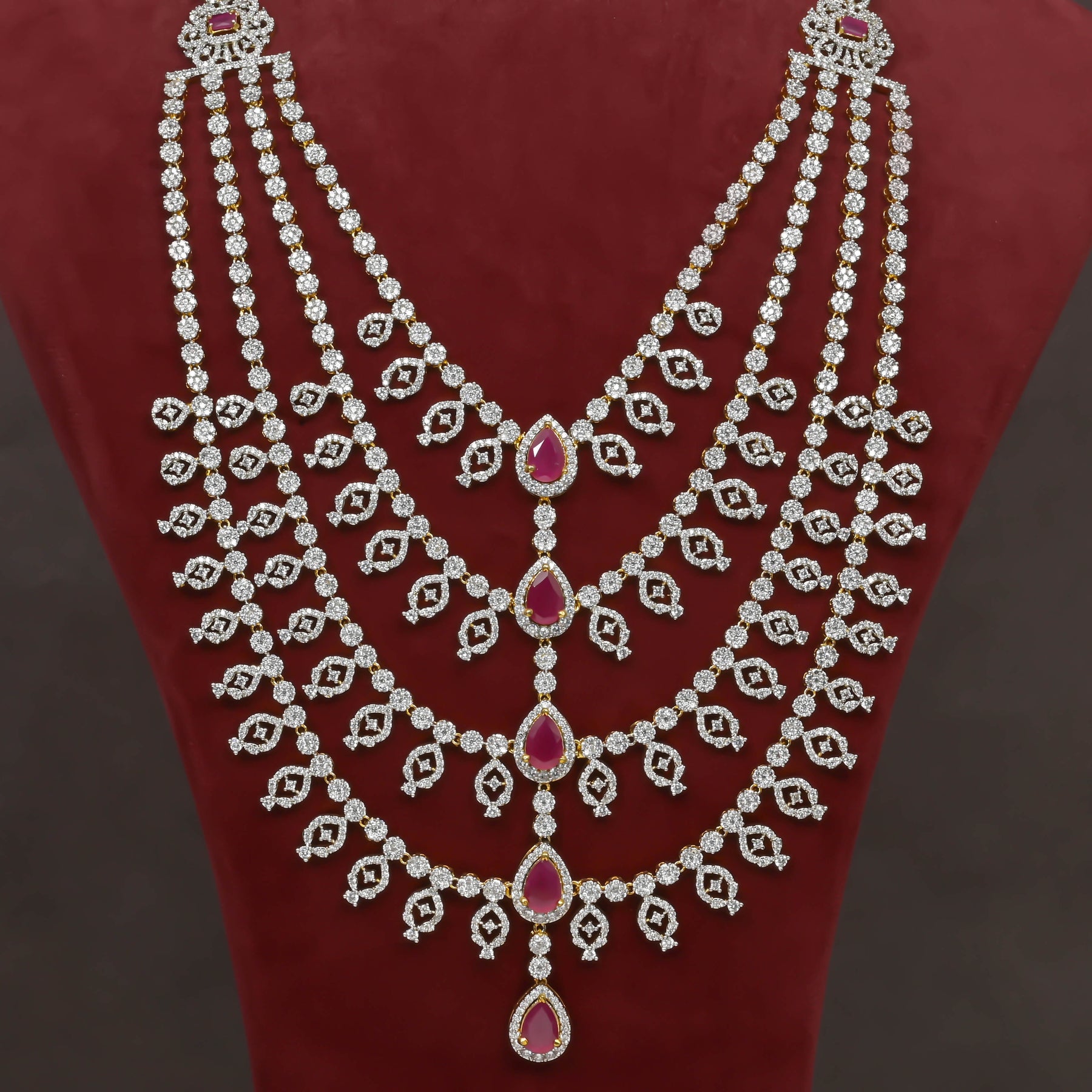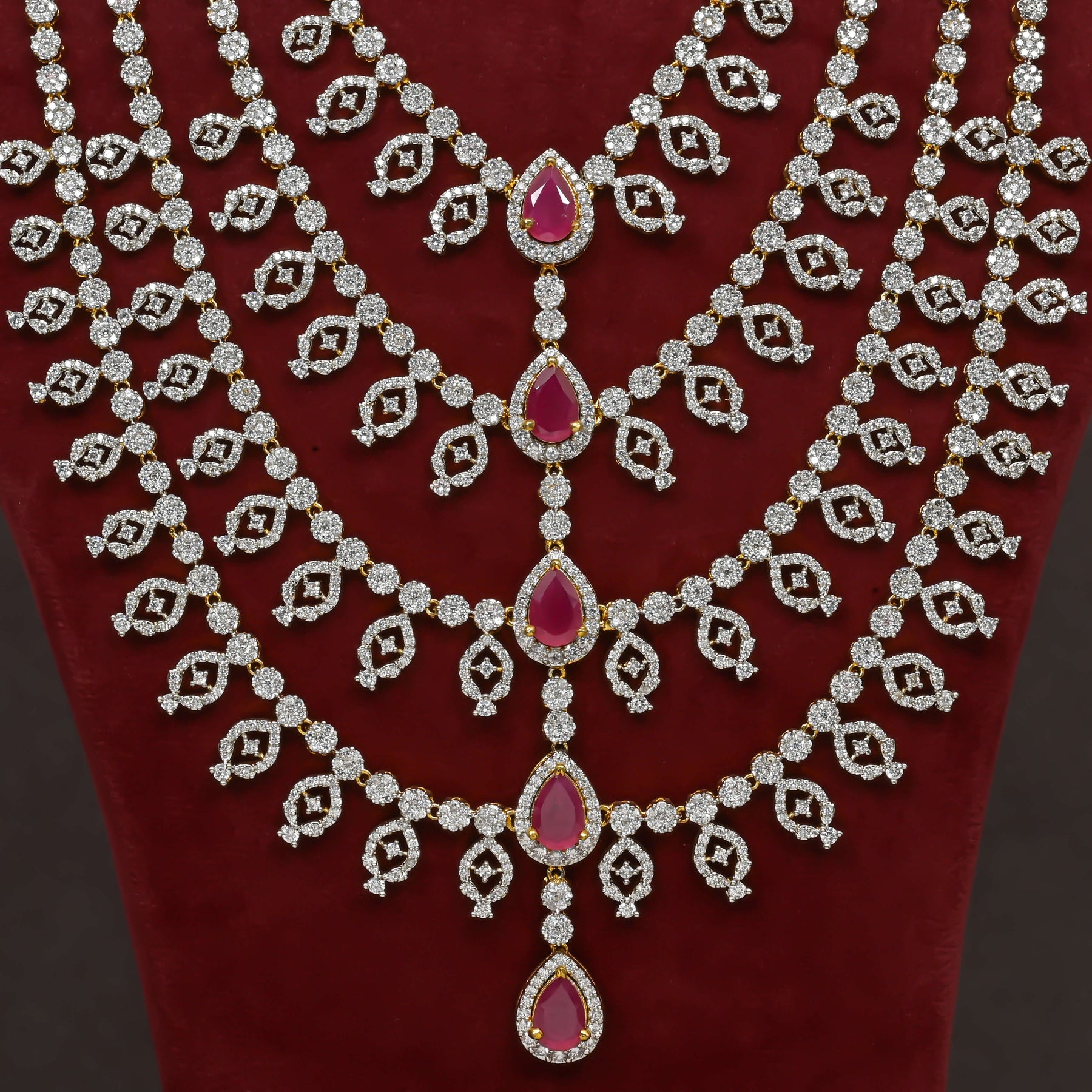 Elevate your collection with this exquisite CZ Necklace Set, meticulously handcrafted to deliver timeless elegance. Featuring authentic cubic zirconia stones paired with semi-precious ruby accents, this piece captures the brilliance of fine jewelry at an accessible price point. The intricate design showcases a regal aesthetic that commands attention, while the one-of-a-kind craftsmanship ensures no two pieces are identical. Perfect for special occasions or as a statement accessory, this necklace set combines superior stone quality with artisanal expertise for a truly distinctive look.