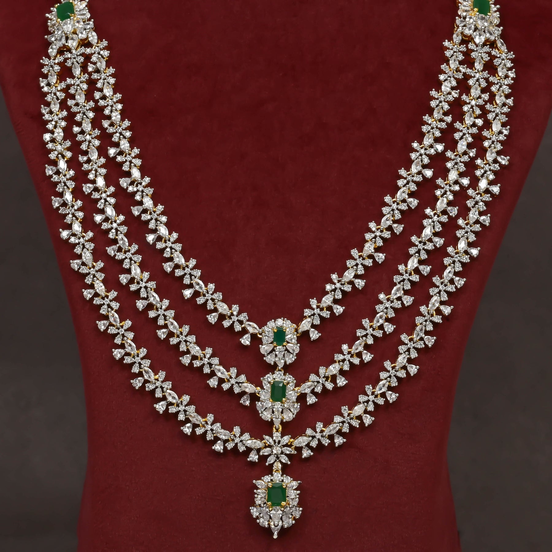 Elevate your collection with this exquisite CZ Necklace Set, meticulously handcrafted to deliver timeless elegance. Featuring authentic cubic zirconia stones paired with semi-precious emerald accents, this piece captures a regal aesthetic that commands attention. Each design is uniquely crafted, ensuring you own a one-of-a-kind treasure that reflects refined taste and sophisticated style. Perfect for special occasions or as a statement addition to everyday wear, this necklace set combines superior craftsmanship with luxurious appeal.