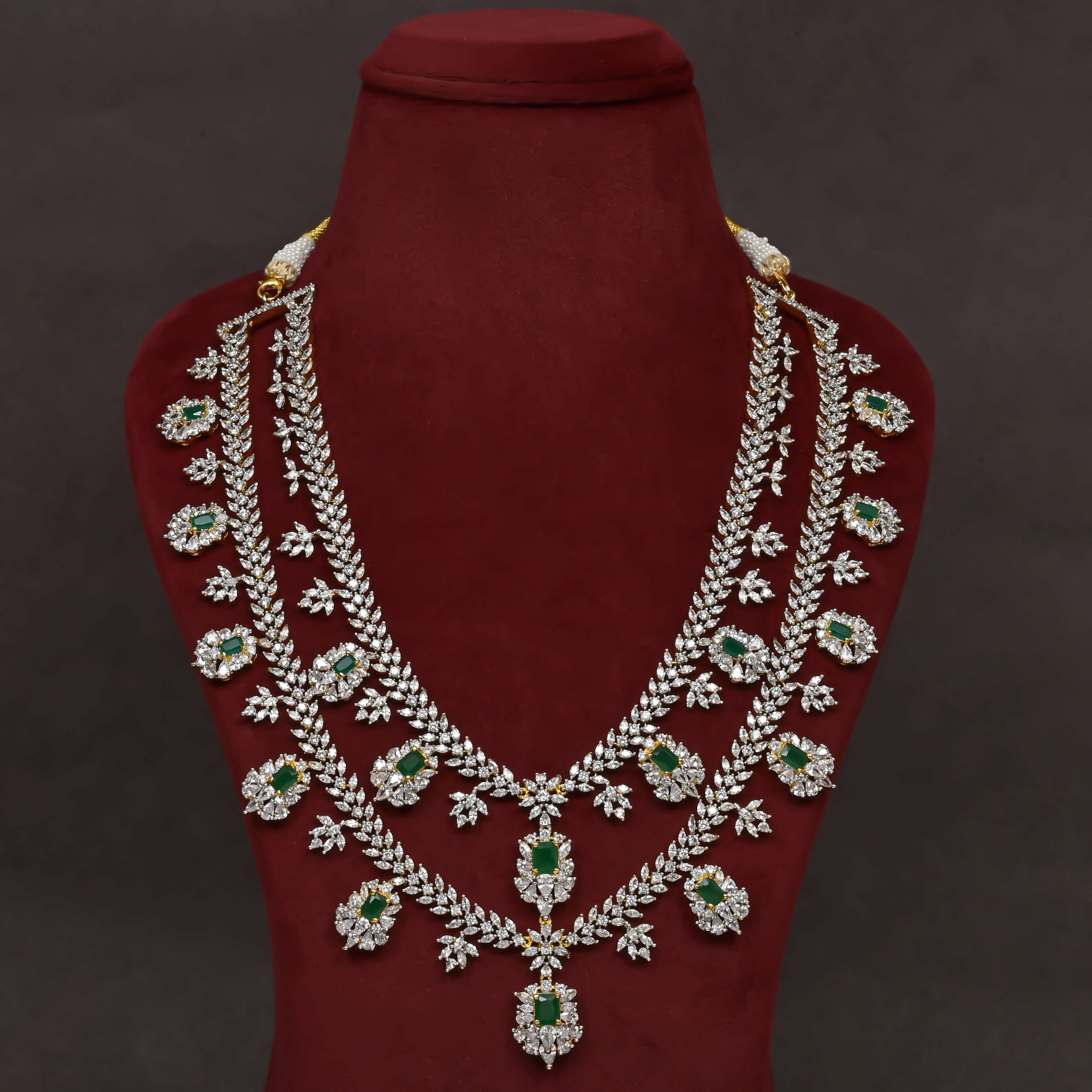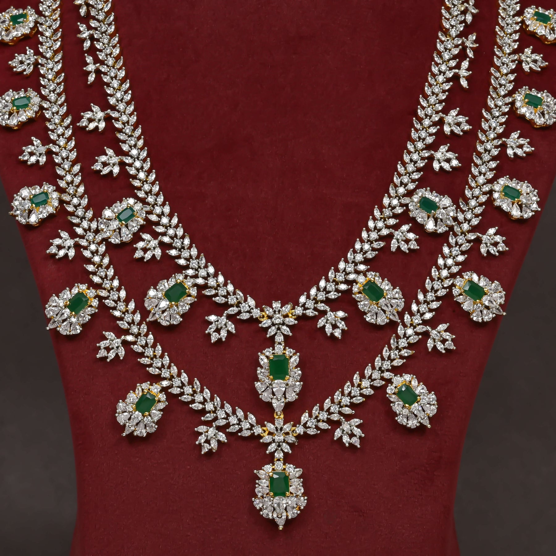 Elevate your collection with this exquisite CZ Necklace Set, meticulously handcrafted to deliver timeless elegance. Featuring authentic cubic zirconia stones paired with semi-precious emerald accents, this piece captures a regal aesthetic that commands attention. Each design is uniquely crafted, ensuring you own a singular treasure rather than mass-produced jewelry. The brilliant sparkle of genuine CZ stones combined with the rich allure of emerald creates a sophisticated interplay of light and color. Perfect for special occasions or as a statement accessory, this necklace set embodies artisanal craftsmanship and distinctive style that sets it apart from conventional designs.