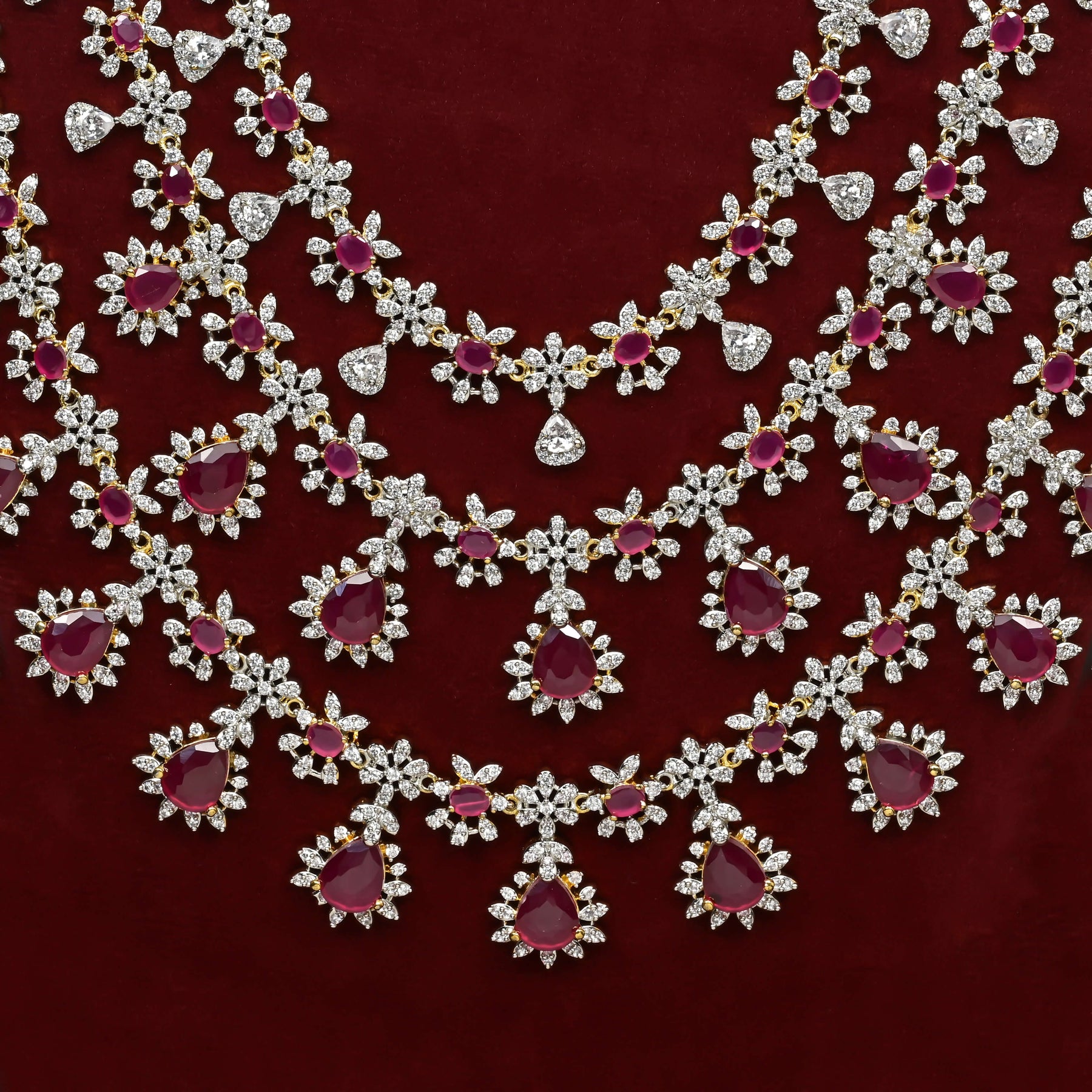 Elevate your collection with this exquisite CZ Necklace Set, meticulously handcrafted to deliver timeless elegance. Featuring authentic cubic zirconia stones paired with semi-precious ruby accents, this piece captures the regal sophistication of fine jewelry at an accessible price point. Each set showcases a distinctive one-of-a-kind design that reflects superior craftsmanship and attention to detail. The royal aesthetic makes it an ideal choice for special occasions, celebrations, or as a statement accessory that complements both traditional and contemporary styling. A versatile investment piece that combines luxury appeal with lasting quality.