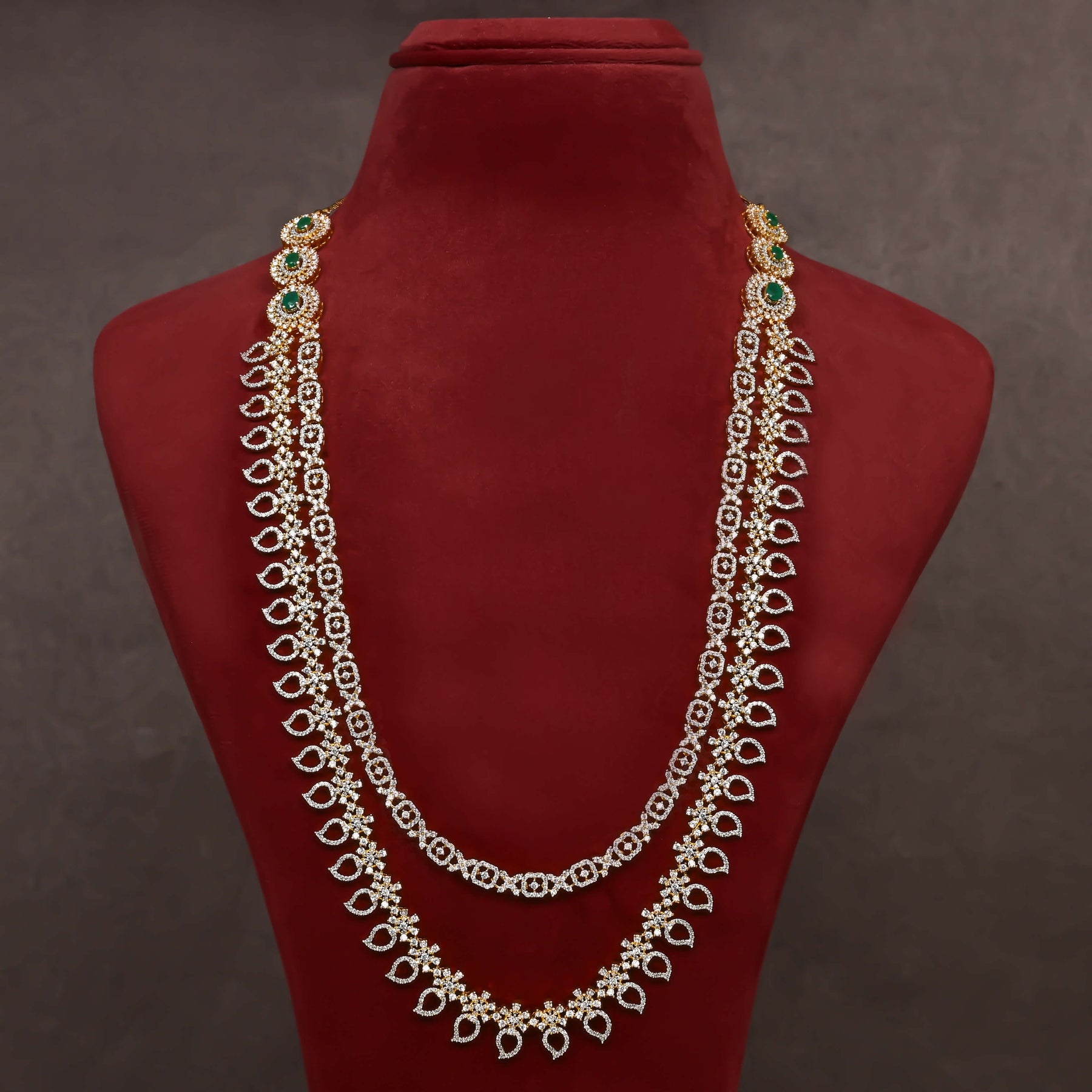Elevate your collection with this exquisite CZ Necklace Set, meticulously handcrafted to deliver a regal aesthetic. Featuring authentic cubic zirconia stones that capture light with brilliant sparkle, each piece showcases a distinctive one-of-a-kind design that sets it apart. The royal-inspired styling makes it an ideal choice for special occasions or as a statement accessory that commands attention. Crafted with precision and artisanal expertise, this necklace set combines timeless elegance with contemporary flair.