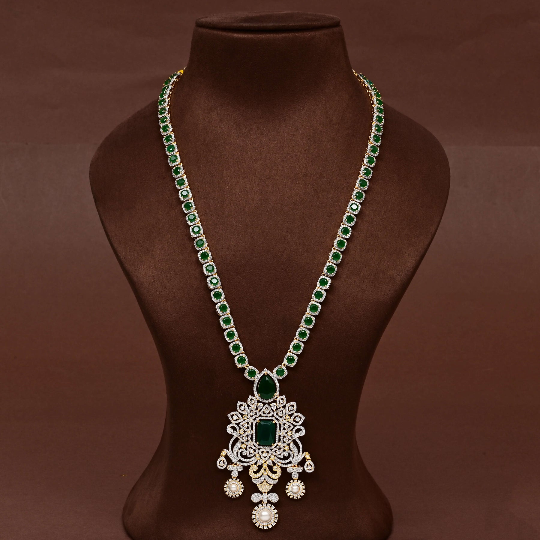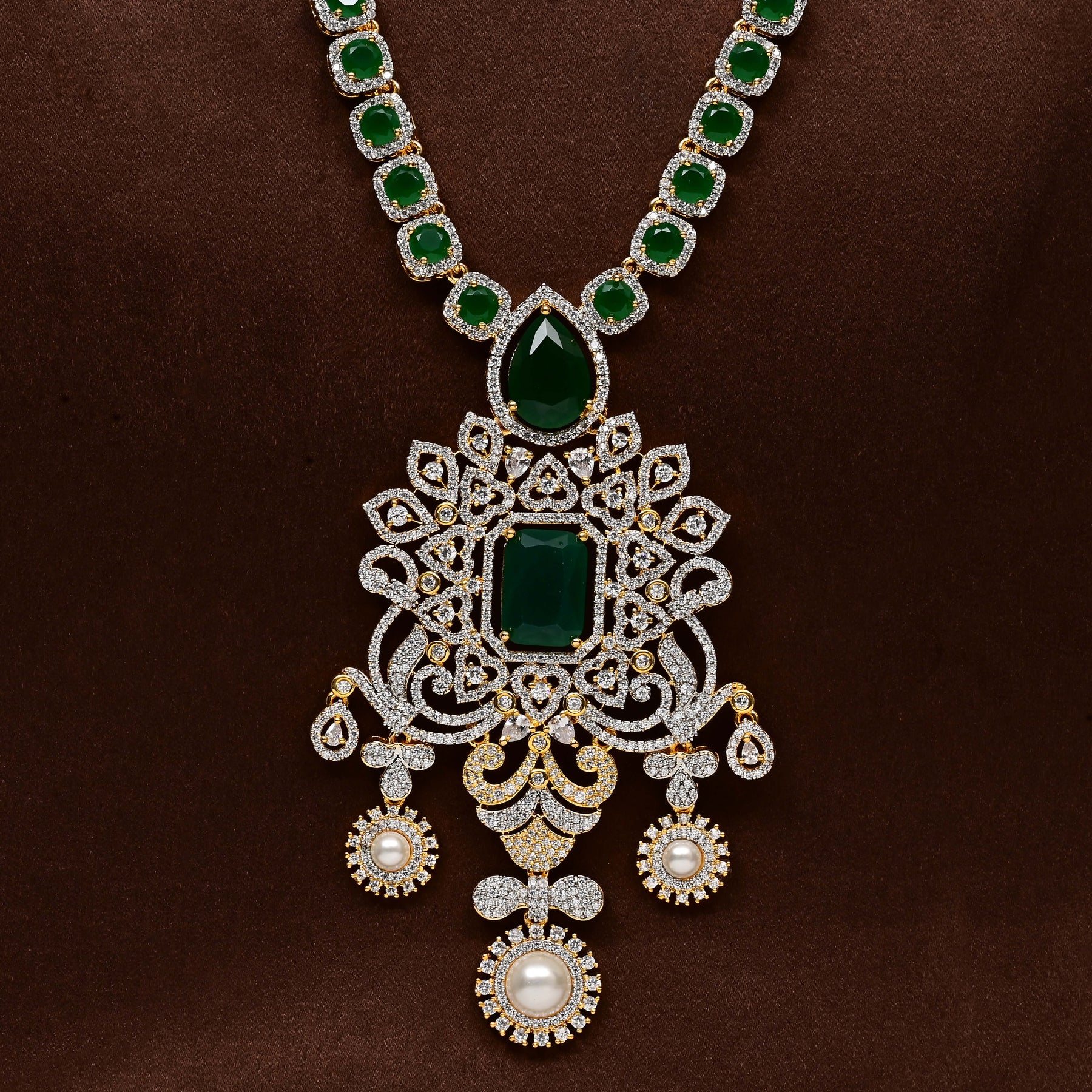 Elevate your collection with this exquisite CZ Necklace Set, meticulously handcrafted to deliver timeless elegance. Featuring authentic cubic zirconia stones paired with semi-precious emerald accents, this piece captures a regal aesthetic that commands attention. Each design is uniquely crafted, ensuring you own a one-of-a-kind treasure that reflects refined taste and sophisticated style. Perfect for special occasions or as a statement accessory that transcends trends.