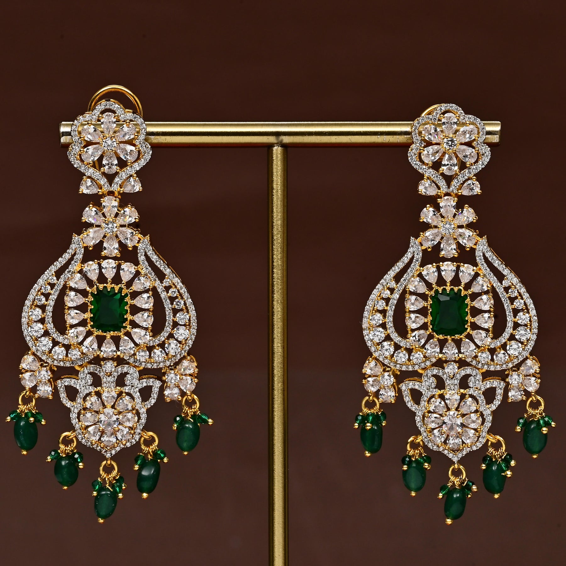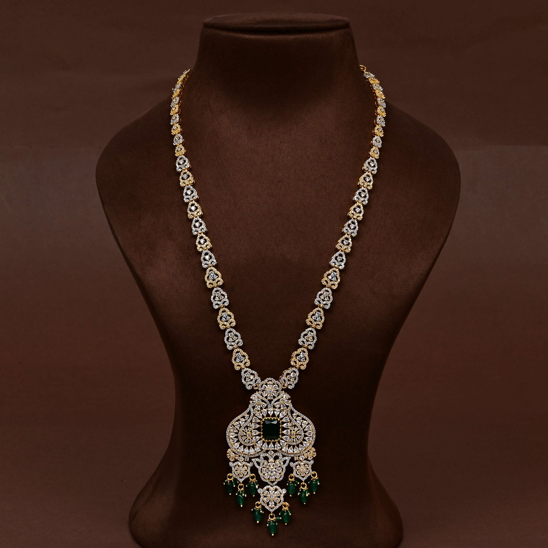 Elevate your collection with this exquisite CZ Necklace Set, featuring authentic cubic zirconia stones paired with semi-precious emerald accents. Each piece is meticulously handcrafted to deliver a regal aesthetic with distinctive, one-of-a-kind design elements. The brilliant sparkle of premium CZ stones combined with the rich green hues of emerald creates a sophisticated look suitable for special occasions or refined everyday wear. This artisanal creation showcases superior craftsmanship and timeless elegance.