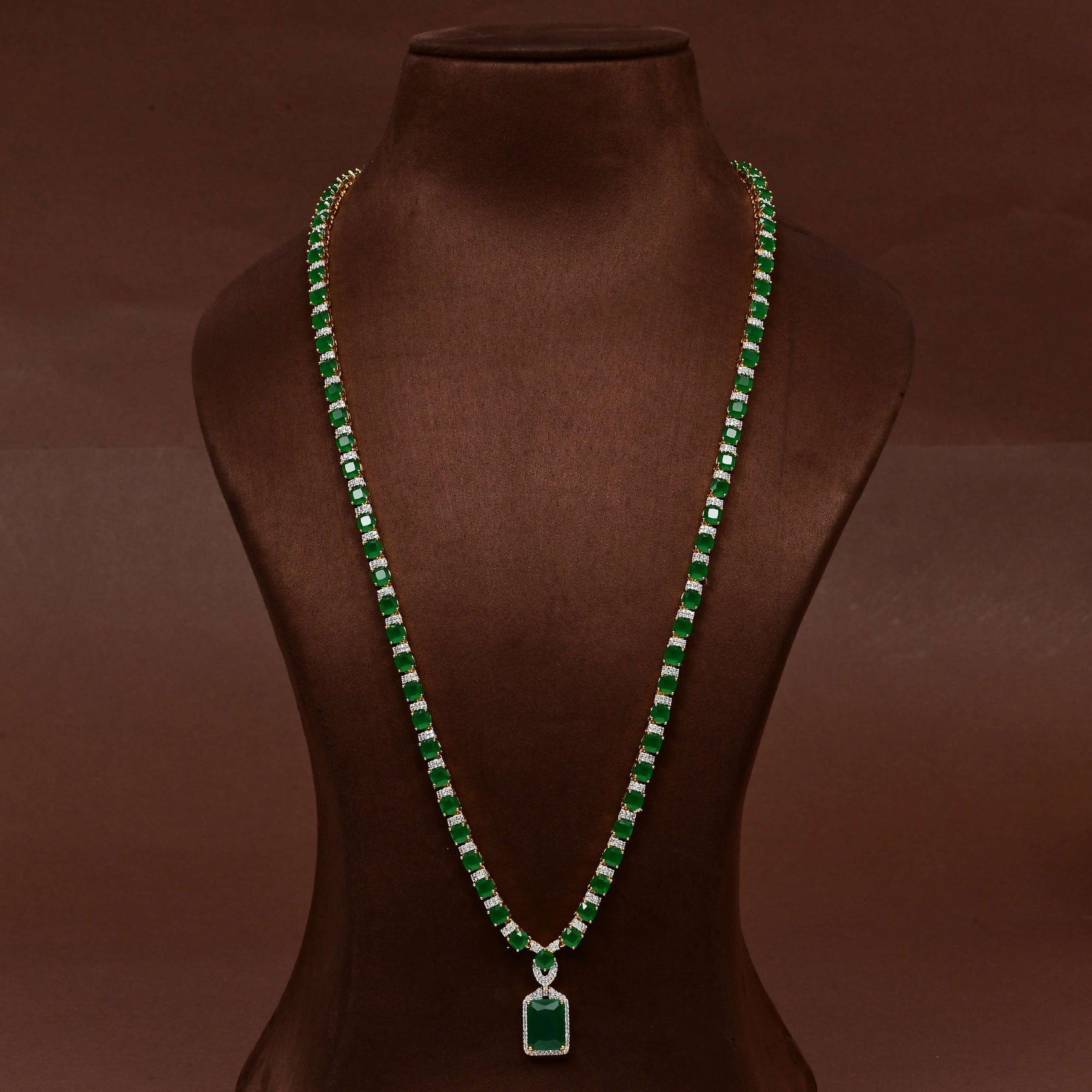 Elevate your collection with this exquisite CZ Necklace Set, meticulously handcrafted to deliver timeless elegance. Featuring authentic cubic zirconia stones paired with semi-precious emerald accents, this piece captures a regal aesthetic that commands attention. Each design is uniquely crafted, ensuring you own a singular treasure rather than mass-produced jewelry. The brilliant sparkle of genuine CZ combined with the rich allure of emerald creates a sophisticated interplay of light and color. Perfect for special occasions or as a statement accessory, this necklace set embodies artisanal craftsmanship and refined taste.
