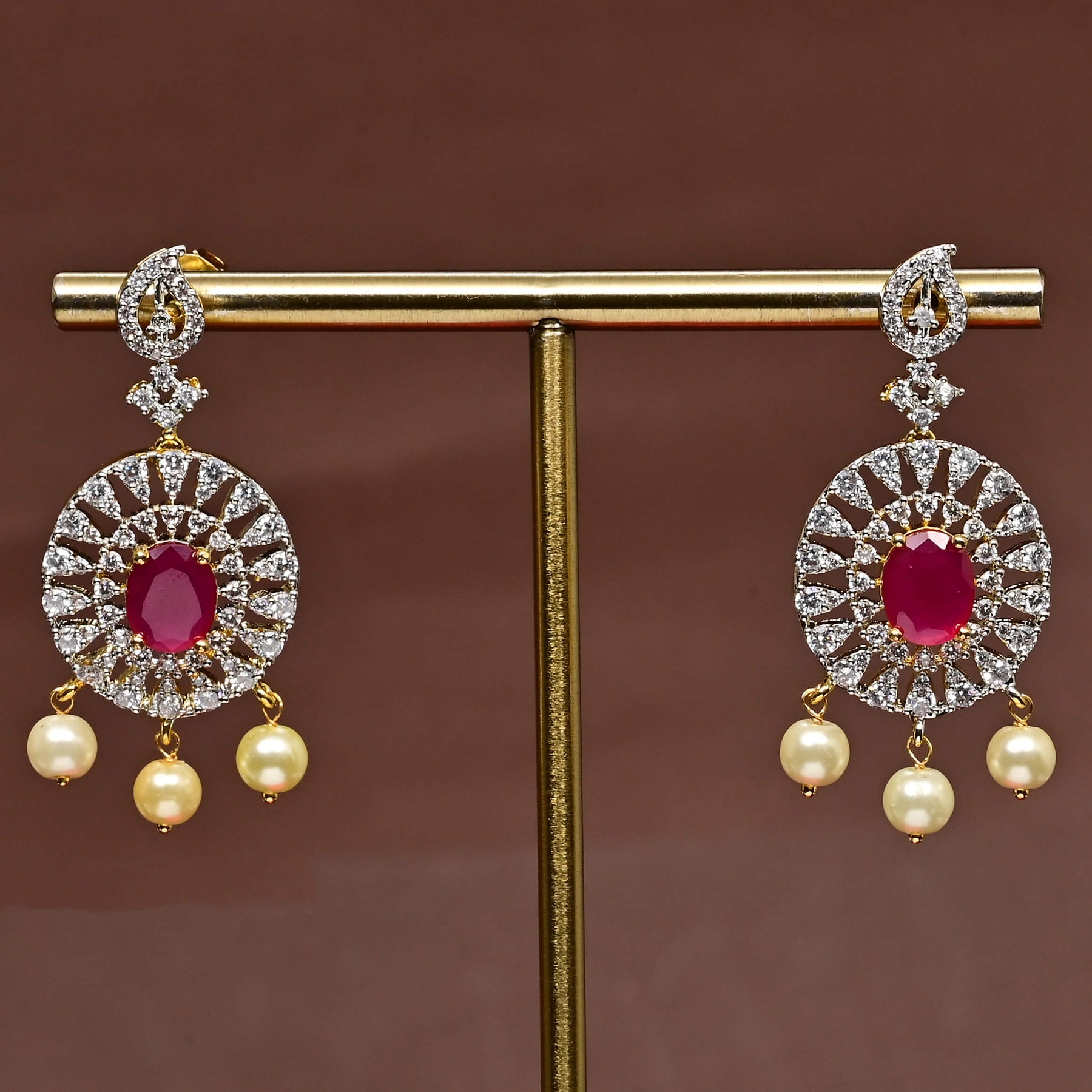 Elevate your collection with this exquisite handcrafted CZ necklace set, featuring authentic cubic zirconia stones paired with semi-precious ruby accents. Each piece showcases a distinctive one-of-a-kind design that captures regal sophistication and timeless elegance. The meticulous craftsmanship delivers a royal aesthetic perfect for special occasions or refined everyday wear. A statement piece that combines luxury appeal with artisanal quality.
