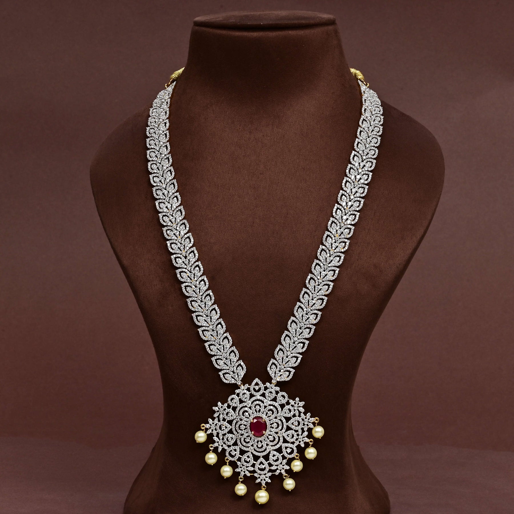 Elevate your collection with this exquisite CZ Necklace Set, meticulously handcrafted to deliver timeless elegance. Featuring authentic cubic zirconia stones paired with semi-precious ruby accents, this piece captures a regal aesthetic with remarkable brilliance. Each design is uniquely created, ensuring you own a one-of-a-kind treasure that stands apart. The expert craftsmanship and luxurious composition make this set an ideal choice for special occasions or as a statement accessory that commands attention.