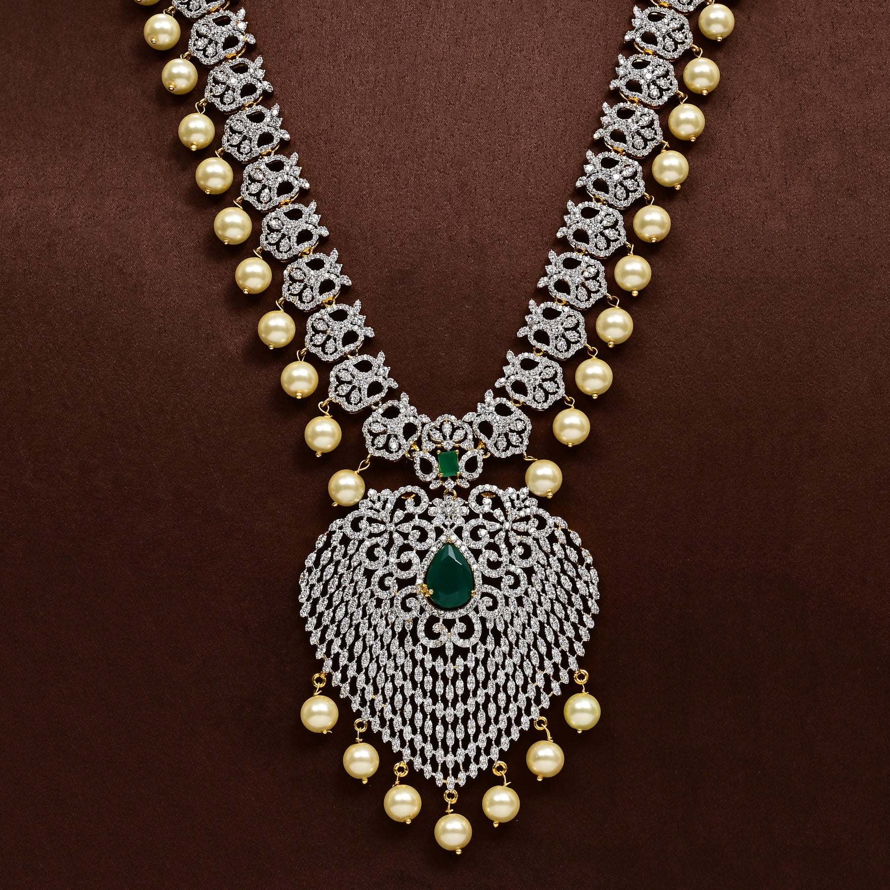 Elevate your collection with this exquisite CZ Necklace Set, meticulously handcrafted to deliver timeless elegance. Featuring authentic cubic zirconia stones paired with semi-precious emerald accents, this piece captures a regal aesthetic that commands attention. Each design is uniquely created, ensuring you own a one-of-a-kind treasure that reflects refined taste and sophisticated style. Perfect for special occasions or as a statement accessory that transcends trends.