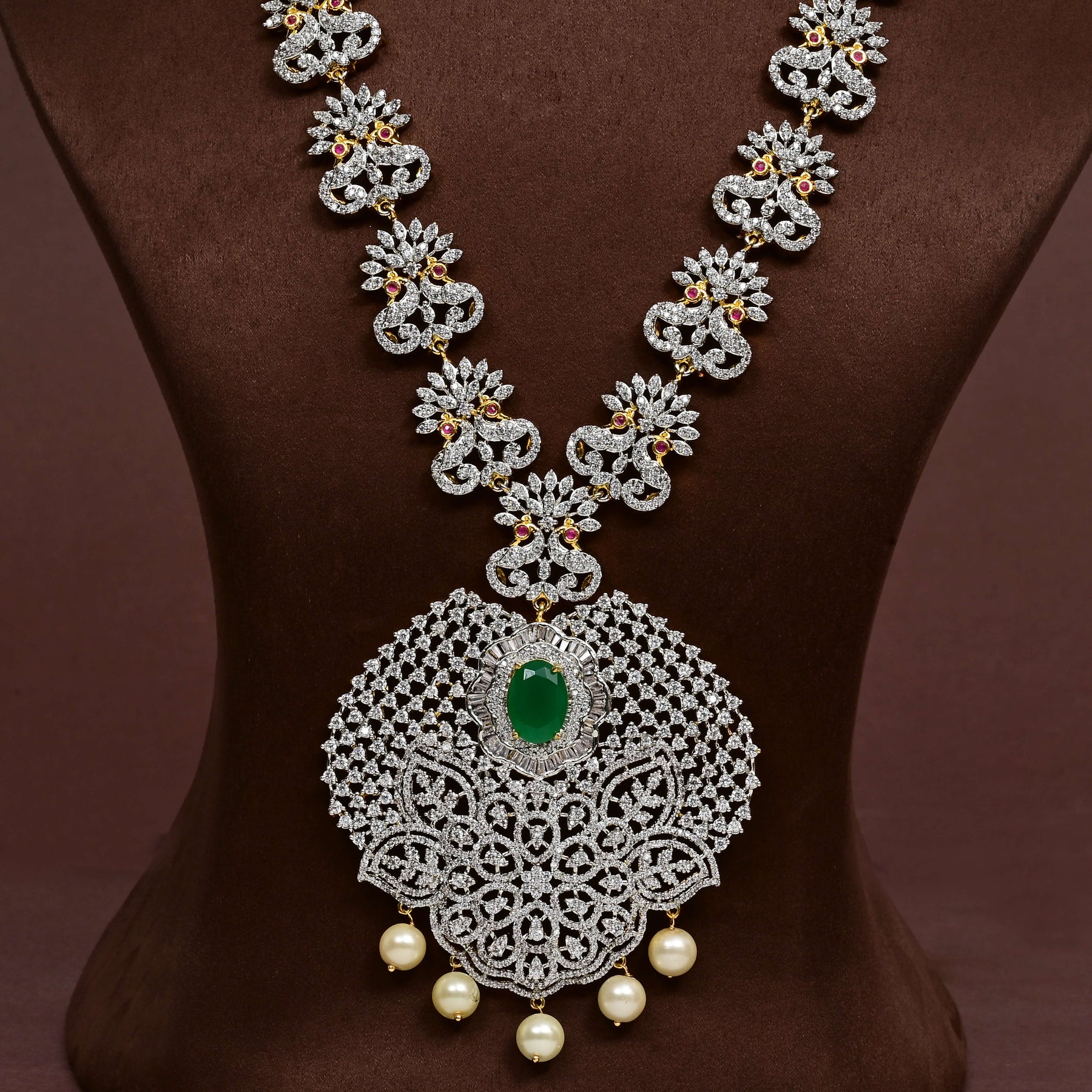 Elevate your collection with this exquisite CZ Necklace Set, featuring authentic cubic zirconia stones paired with semi-precious emerald accents. Each piece is meticulously handcrafted to deliver a regal aesthetic with distinctive, one-of-a-kind design elements. The brilliant sparkle of premium CZ stones combined with the rich green hues of emerald creates a sophisticated look suitable for special occasions or elevated everyday wear. This artisanal creation showcases superior craftsmanship and timeless elegance.