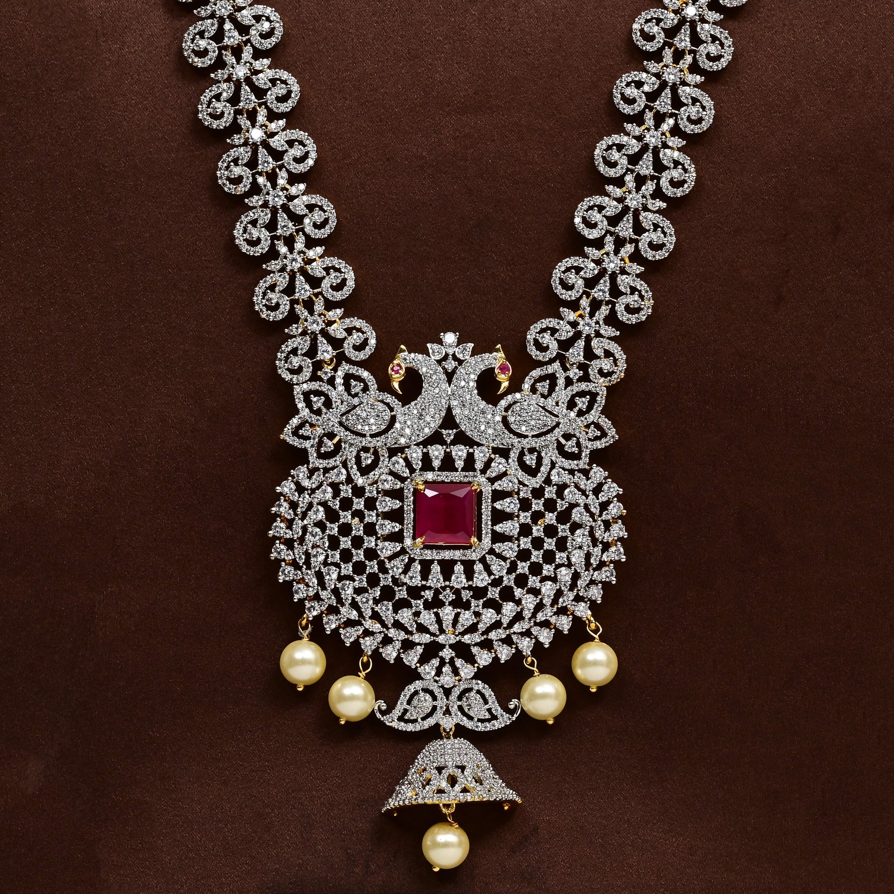 Elevate your collection with this exquisite CZ Necklace Set, meticulously handcrafted to deliver timeless elegance. Featuring brilliant diamond-finish cubic zirconia stones paired with semi-precious ruby accents, this piece captures the opulence of fine jewelry at an accessible price point. Each set showcases a distinctive one-of-a-kind design with a regal aesthetic that commands attention. The expert craftsmanship ensures durability and lasting sparkle, making it an ideal choice for special occasions or everyday luxury. A statement piece that reflects refined taste and sophisticated style.