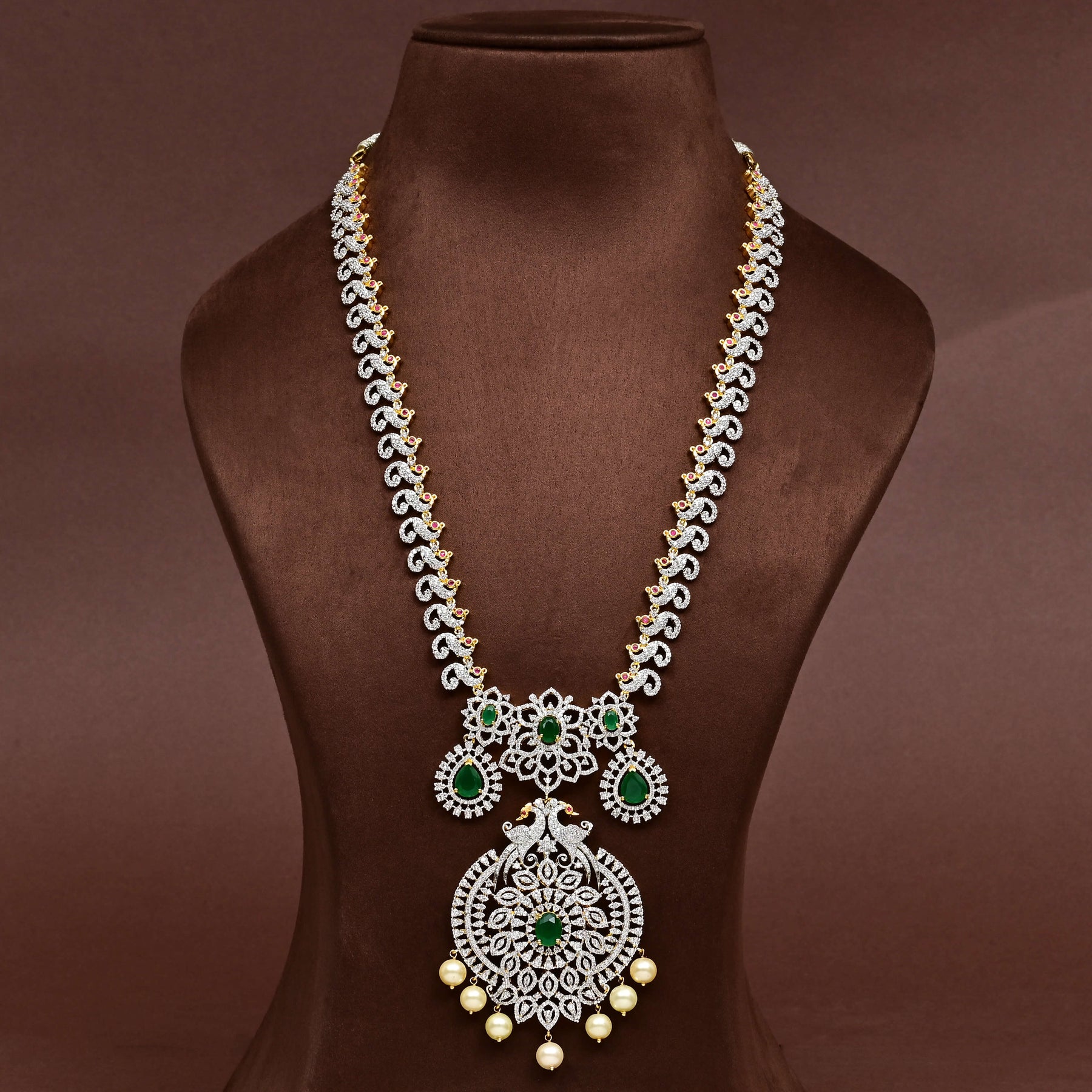 Elevate your collection with this exquisite CZ Necklace Set, meticulously handcrafted to deliver timeless elegance. Featuring authentic cubic zirconia stones in a brilliant diamond finish paired with semi-precious emerald accents, this piece captures a regal aesthetic that commands attention. Each design is uniquely created, ensuring you own a truly one-of-a-kind treasure. The expert craftsmanship and luxurious composition make this necklace set an ideal choice for special occasions or as a statement accessory that transcends everyday wear.