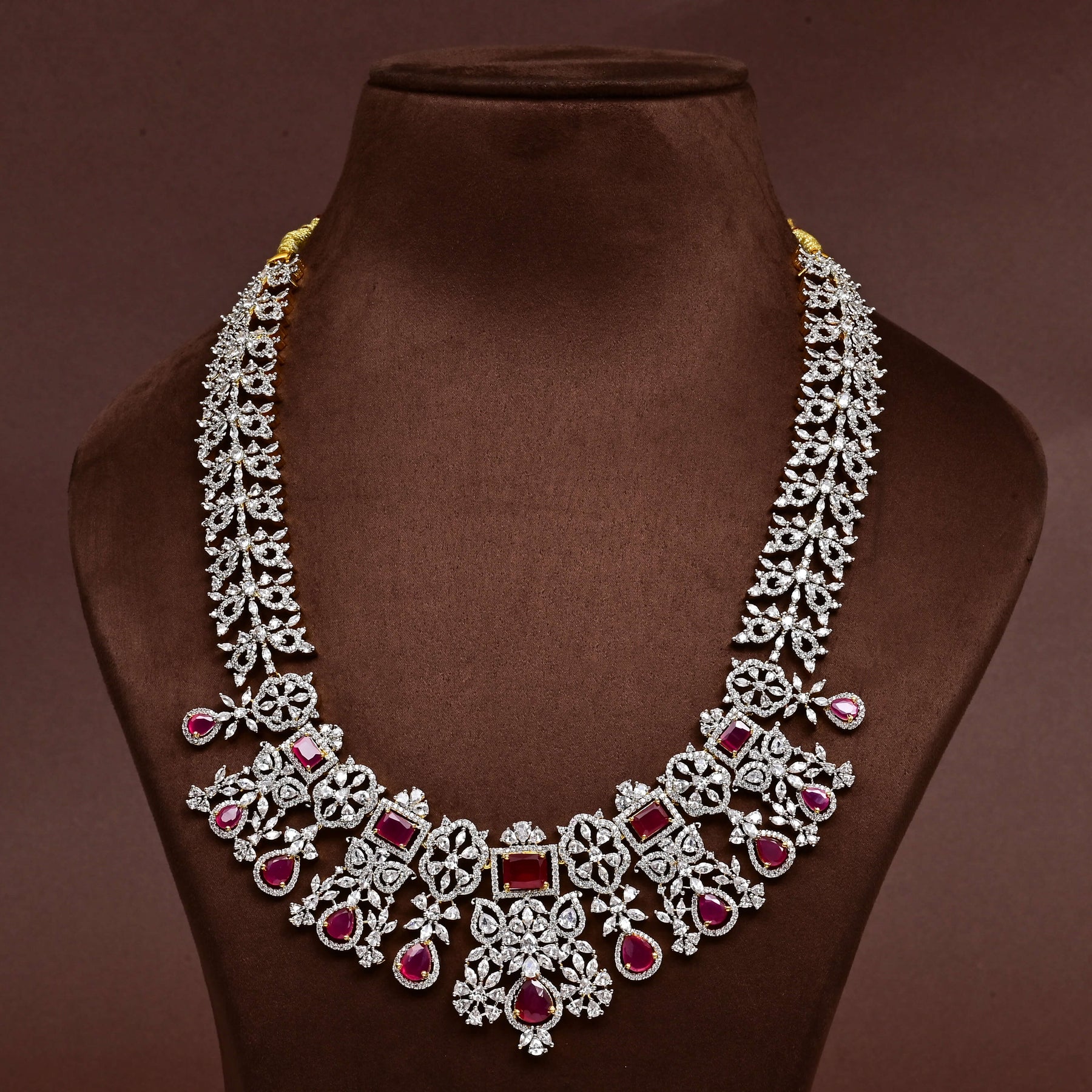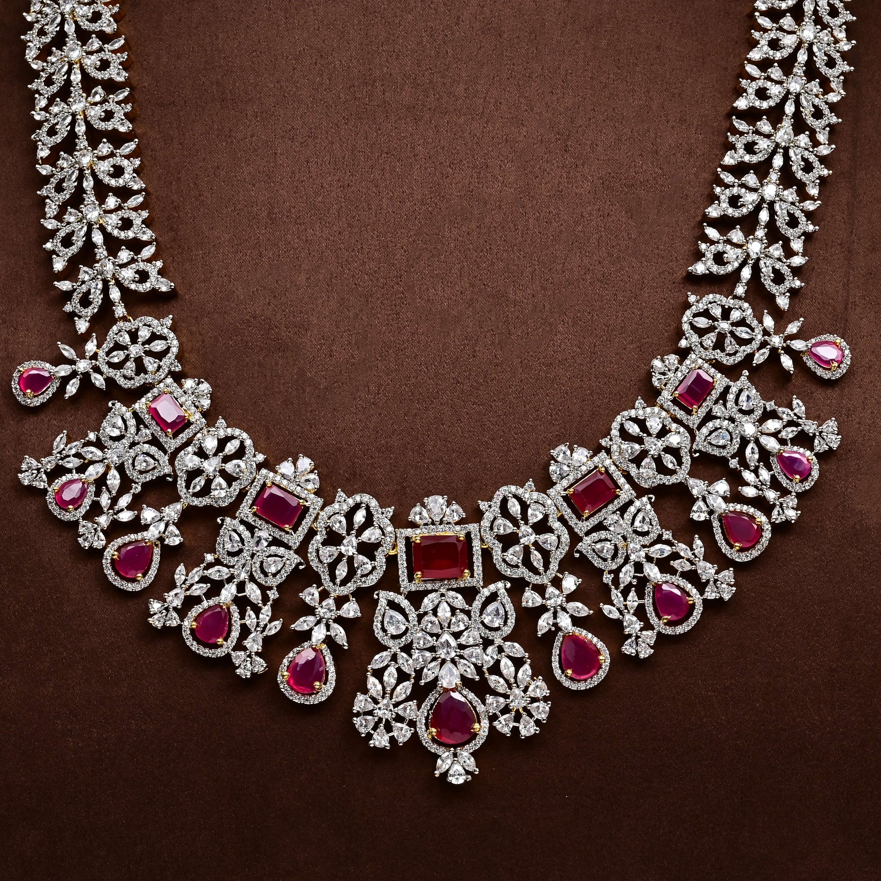 Elevate your collection with this exquisite CZ Necklace Set, meticulously handcrafted to deliver timeless elegance. Featuring brilliant diamond-finish cubic zirconia stones paired with rich semi-precious ruby accents, this piece captures the opulence of fine jewelry with distinctive flair. Each set showcases a one-of-a-kind design that exudes royal sophistication, making it an ideal choice for special occasions or discerning everyday wear. The expert craftsmanship ensures lasting quality and radiant sparkle that commands attention.