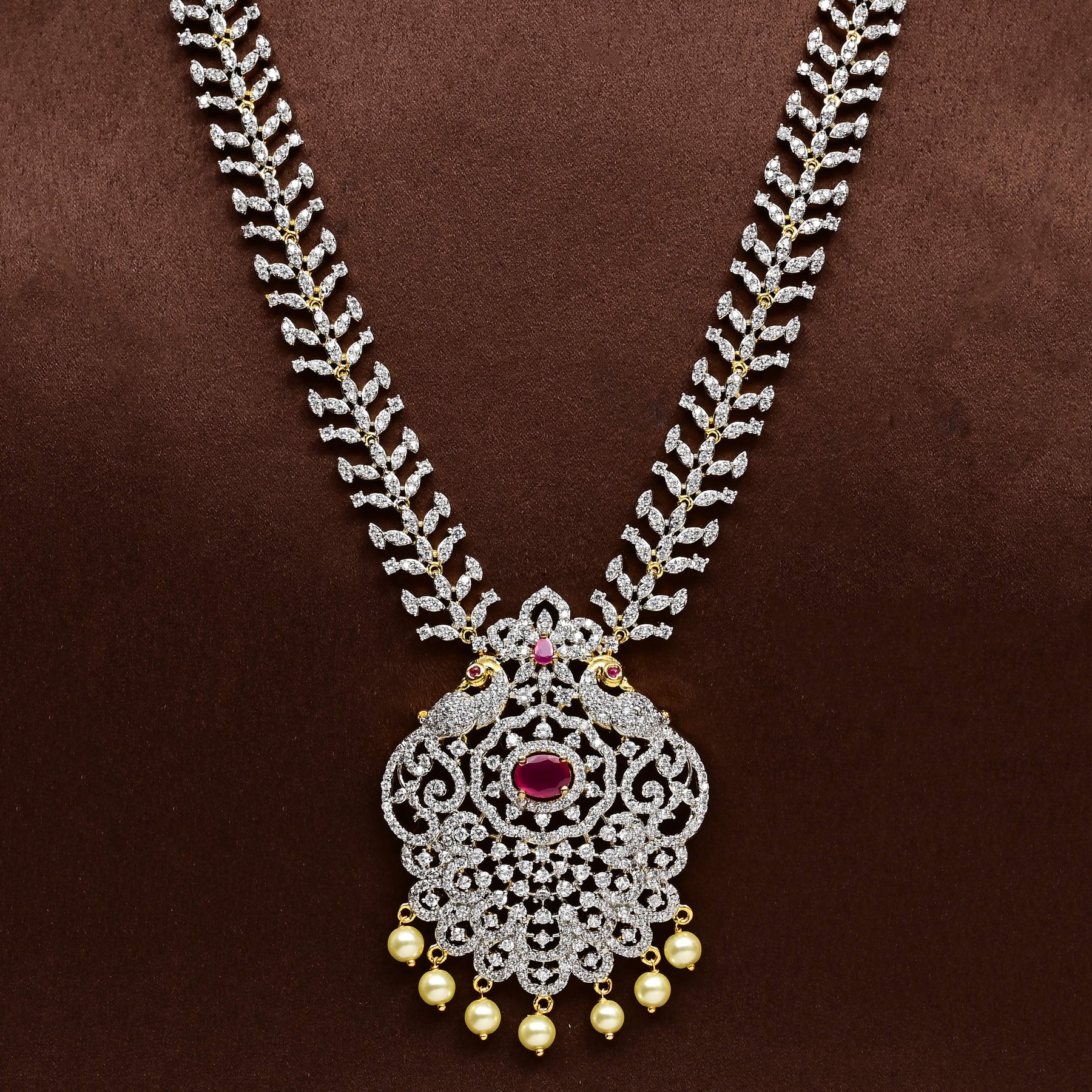Elevate your collection with this exquisite CZ Necklace Set, meticulously handcrafted to deliver timeless elegance. Featuring authentic cubic zirconia stones in a brilliant diamond finish paired with semi-precious ruby accents, this set captures the opulence of fine jewelry at an accessible price point. Each piece showcases a distinctive one-of-a-kind design with royal aesthetics, making it an ideal choice for special occasions or everyday luxury. The expert craftsmanship ensures durability and lasting brilliance, while the sophisticated styling complements both traditional and contemporary wardrobes.