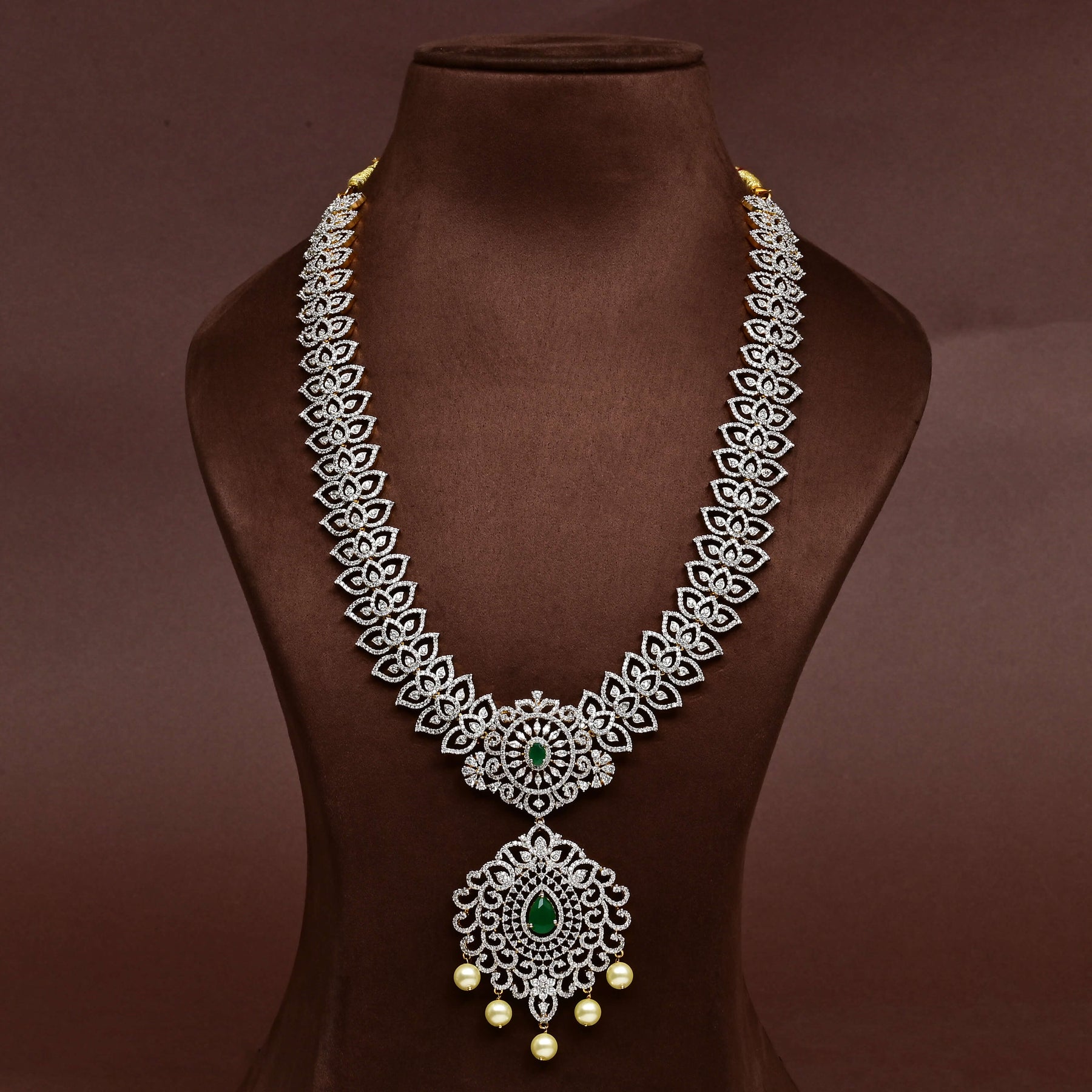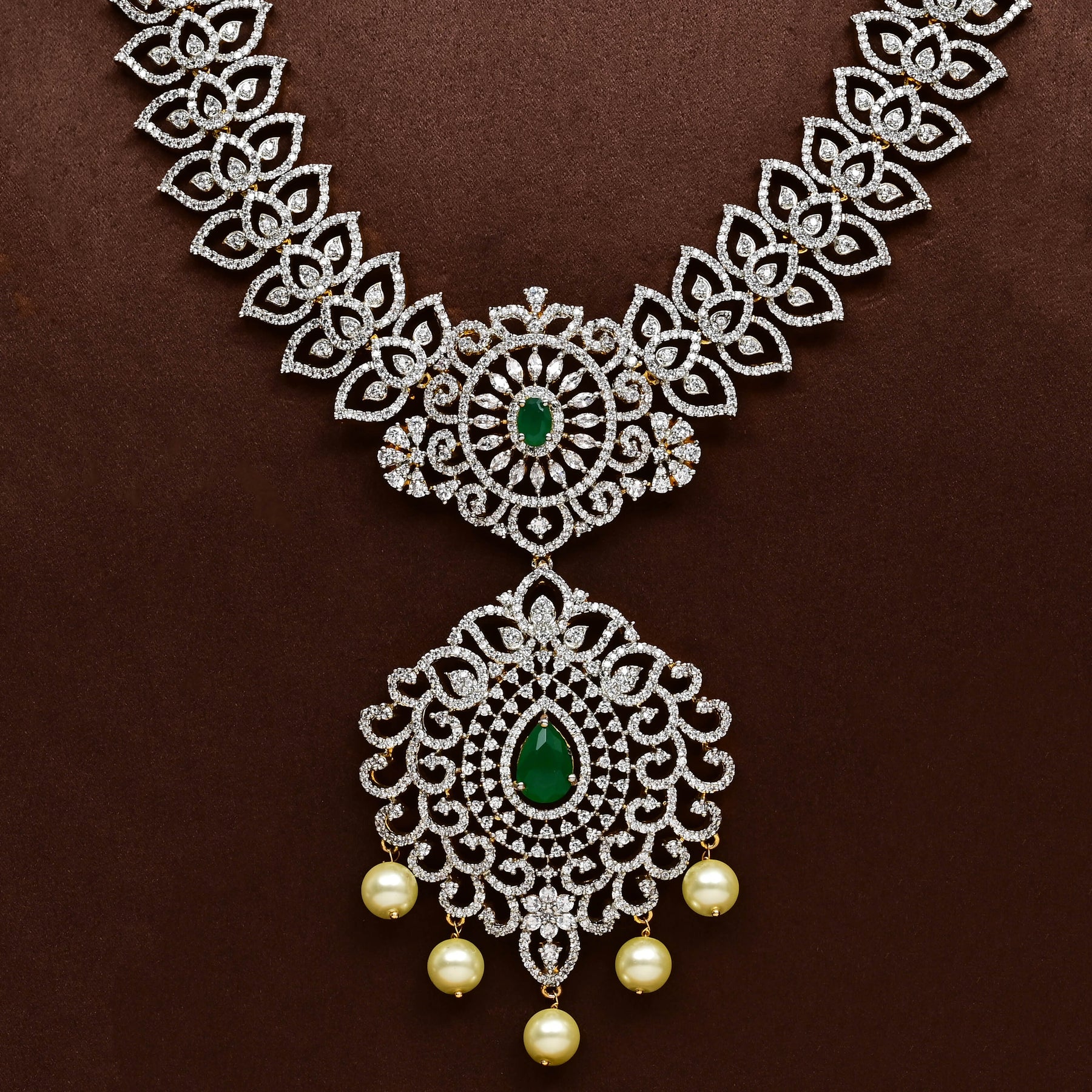 Elevate your collection with this exquisite CZ Necklace Set, meticulously handcrafted to deliver timeless elegance. Featuring authentic cubic zirconia stones in a brilliant diamond finish paired with semi-precious emerald accents, this piece captures the regal sophistication of fine jewelry. Each design is uniquely created, ensuring you own a one-of-a-kind treasure that commands attention. The masterful craftsmanship reflects superior quality and attention to detail, making it an ideal choice for special occasions or as a statement accessory that transcends trends.