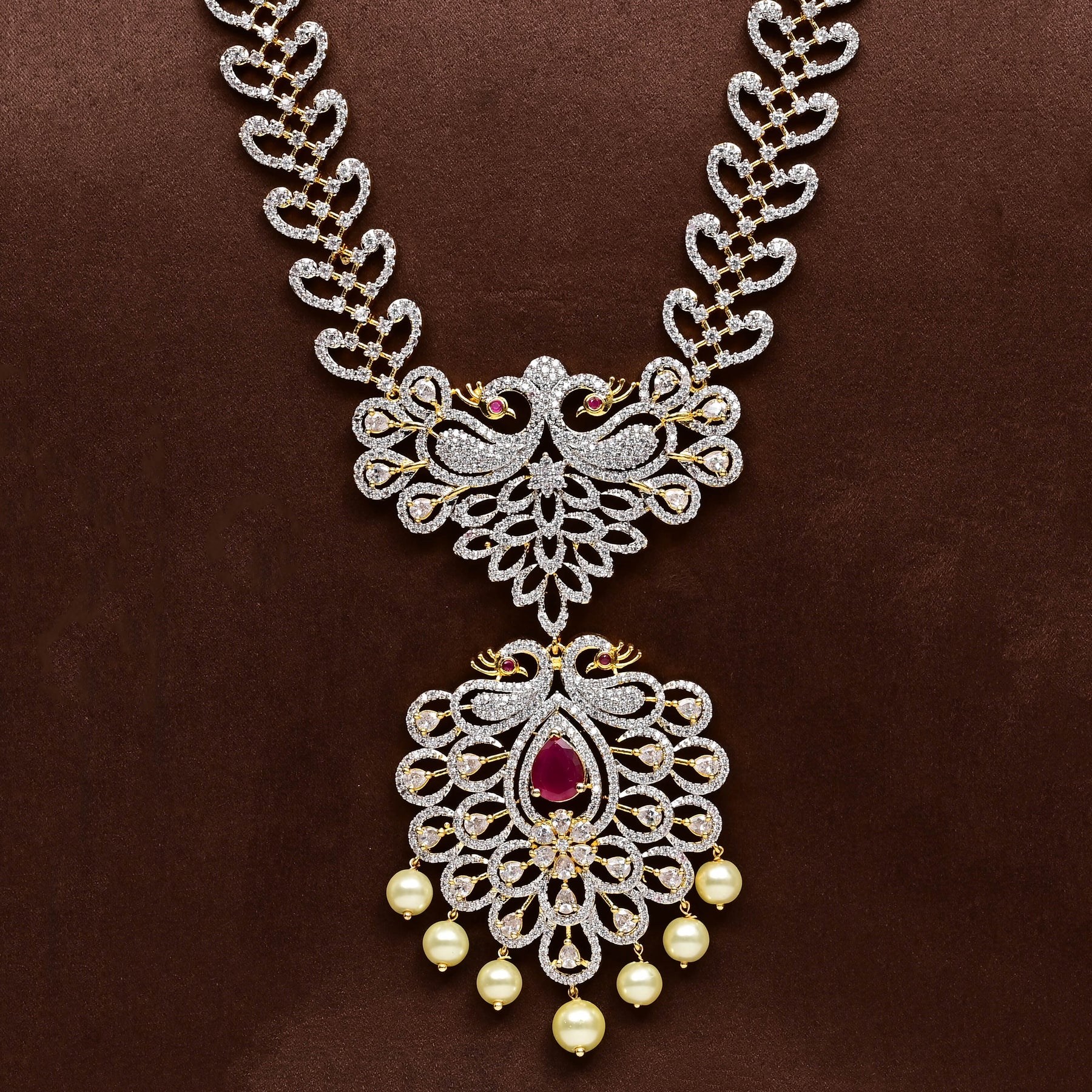 Elevate your collection with this exquisite CZ Necklace Set, meticulously handcrafted to deliver timeless elegance. Featuring authentic cubic zirconia stones in a brilliant diamond finish paired with semi-precious ruby accents, this set captures the opulence of fine jewelry at an accessible price point. Each piece showcases a distinctive one-of-a-kind design with royal aesthetics, making it an ideal choice for special occasions or everyday luxury. The expert craftsmanship ensures durability and lasting brilliance, while the sophisticated styling complements both traditional and contemporary wardrobes.