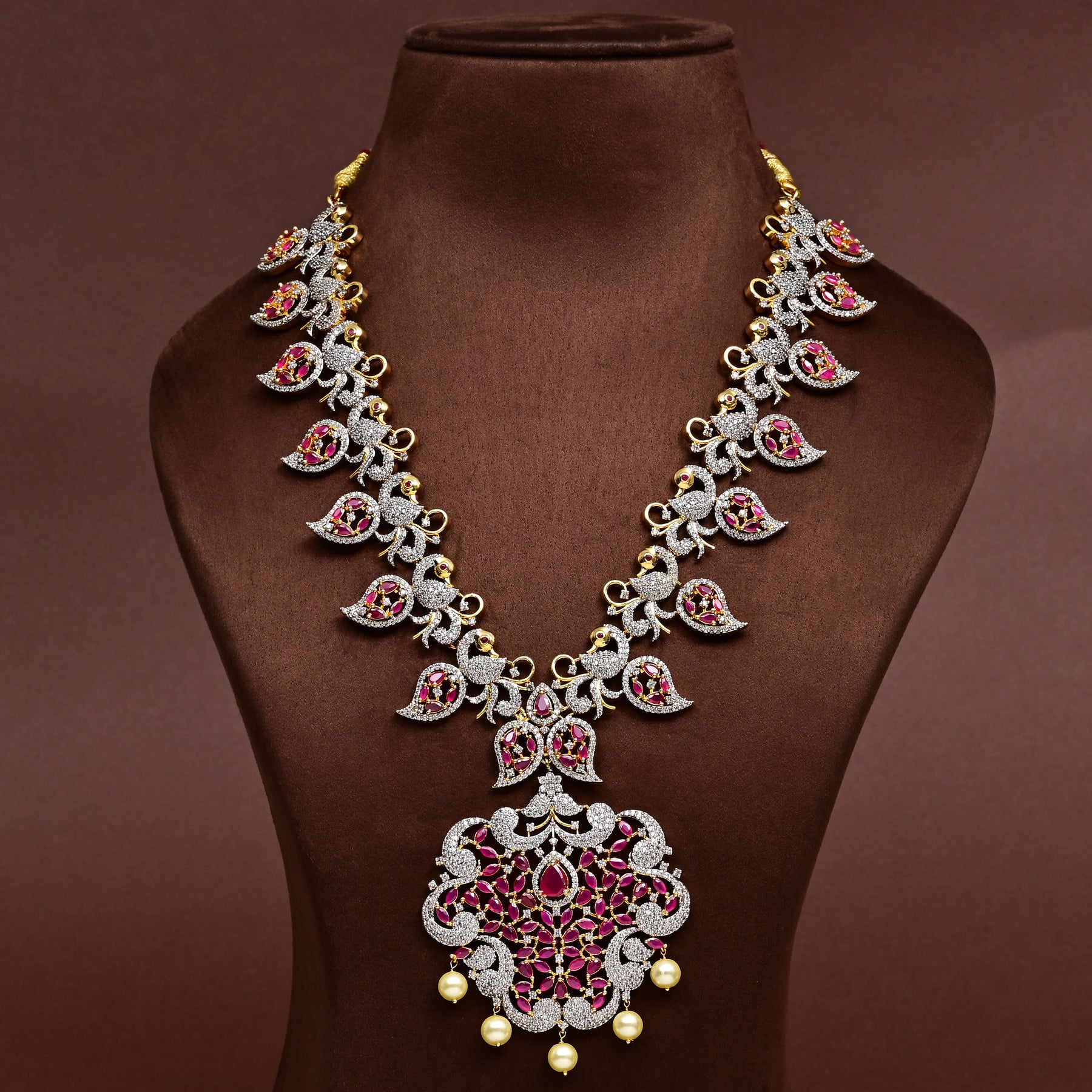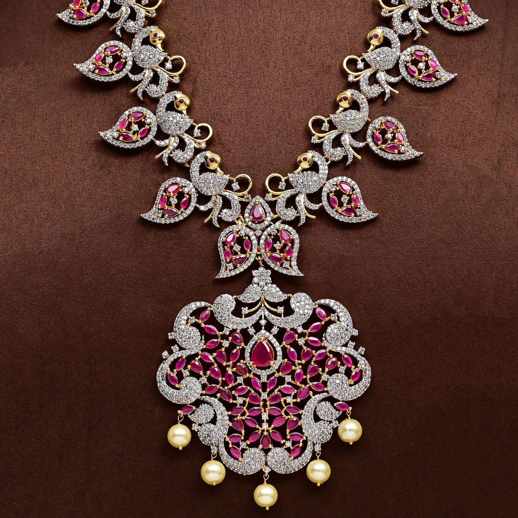 Elevate your collection with this exquisite CZ Necklace Set, meticulously handcrafted to deliver timeless elegance. Featuring brilliant diamond-finish cubic zirconia stones paired with rich semi-precious ruby accents, this piece captures the opulence of fine jewelry at an accessible price point. Each set showcases a distinctive one-of-a-kind design with a regal aesthetic that commands attention. The expert craftsmanship ensures durability and lasting sparkle, making it an ideal choice for special occasions or everyday luxury. Experience the perfect balance of sophistication and individuality with this statement-making necklace set.