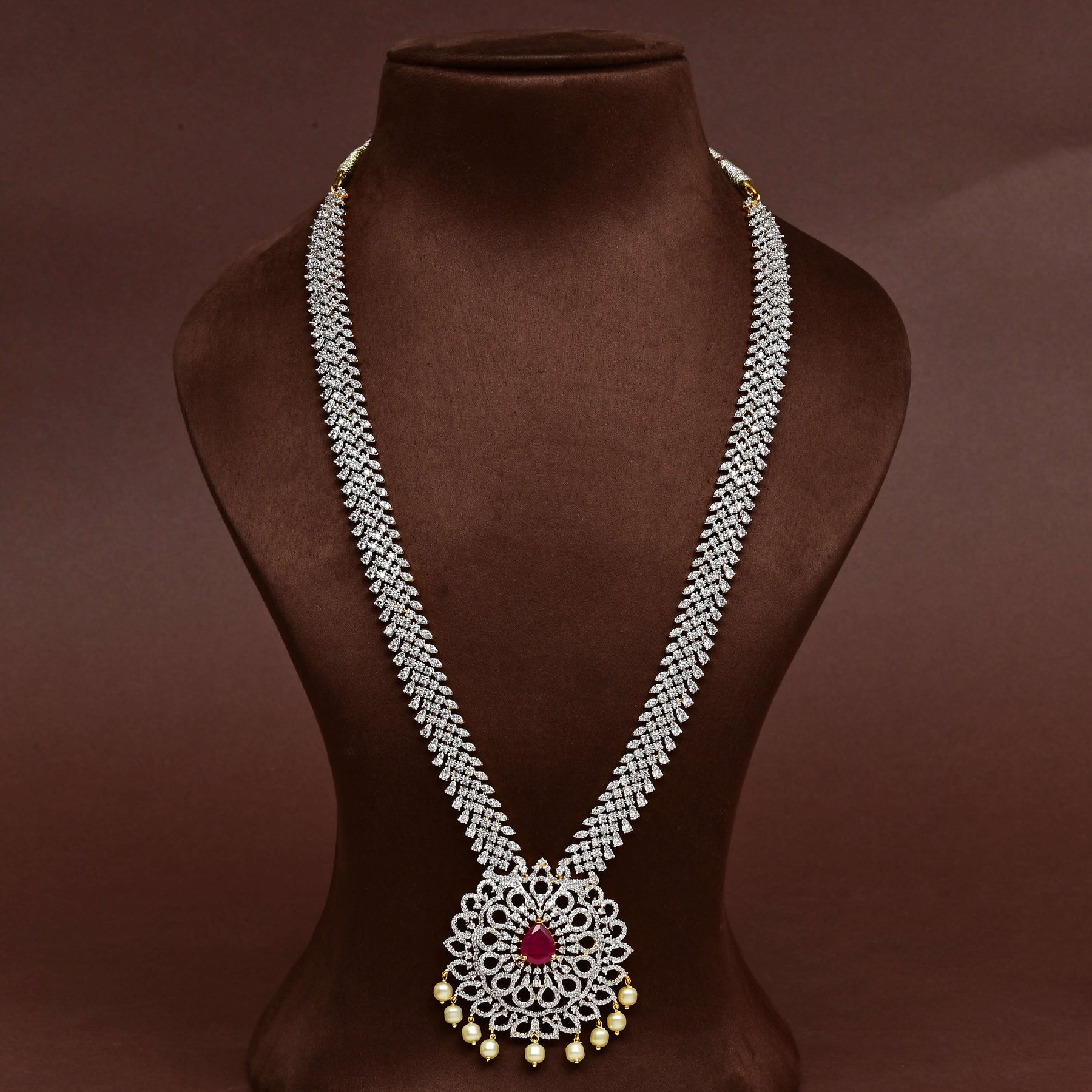 This handcrafted CZ Necklace Set features real CZ stones and semi-precious ruby stones, with a diamond finish for a royal and one-of-a-kind look. Expertly designed, this necklace set exudes luxury and elegance. Elevate any outfit with this stunning accessory.