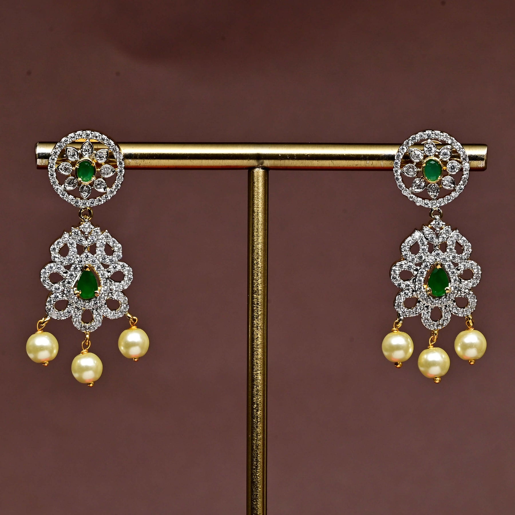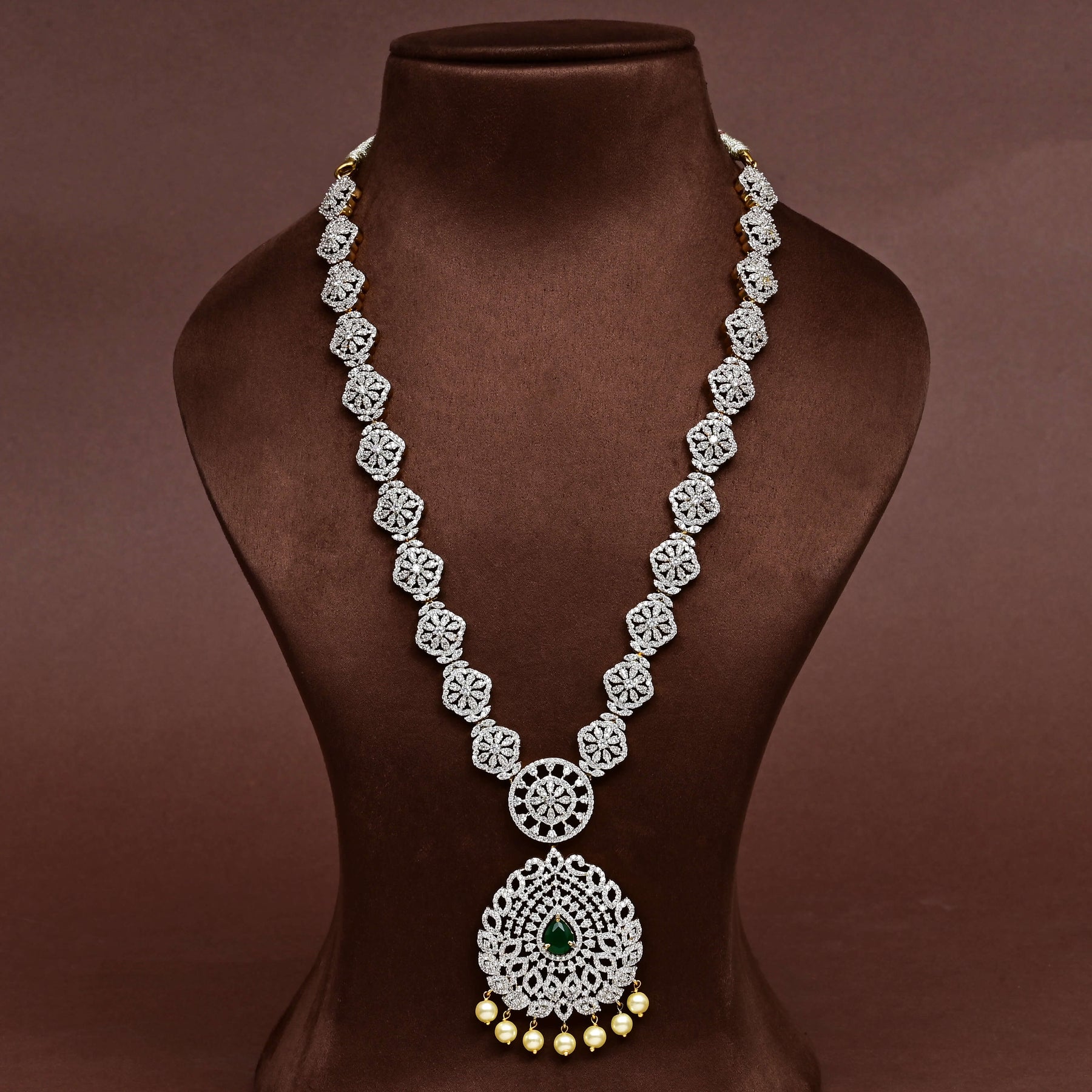 Elevate your jewelry collection with our CZ Necklace Set. This handcrafted set features a diamond finish and real CZ and semi precious emerald stones. With a one of a kind design, this set provides a royal look that is sure to turn heads. Upgrade your style with this unique and elegant piece.