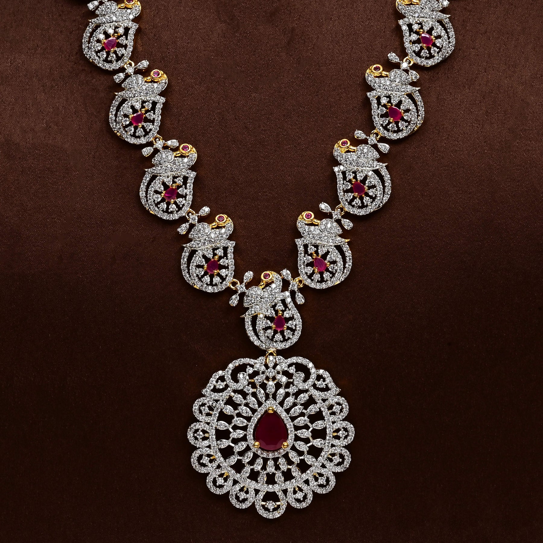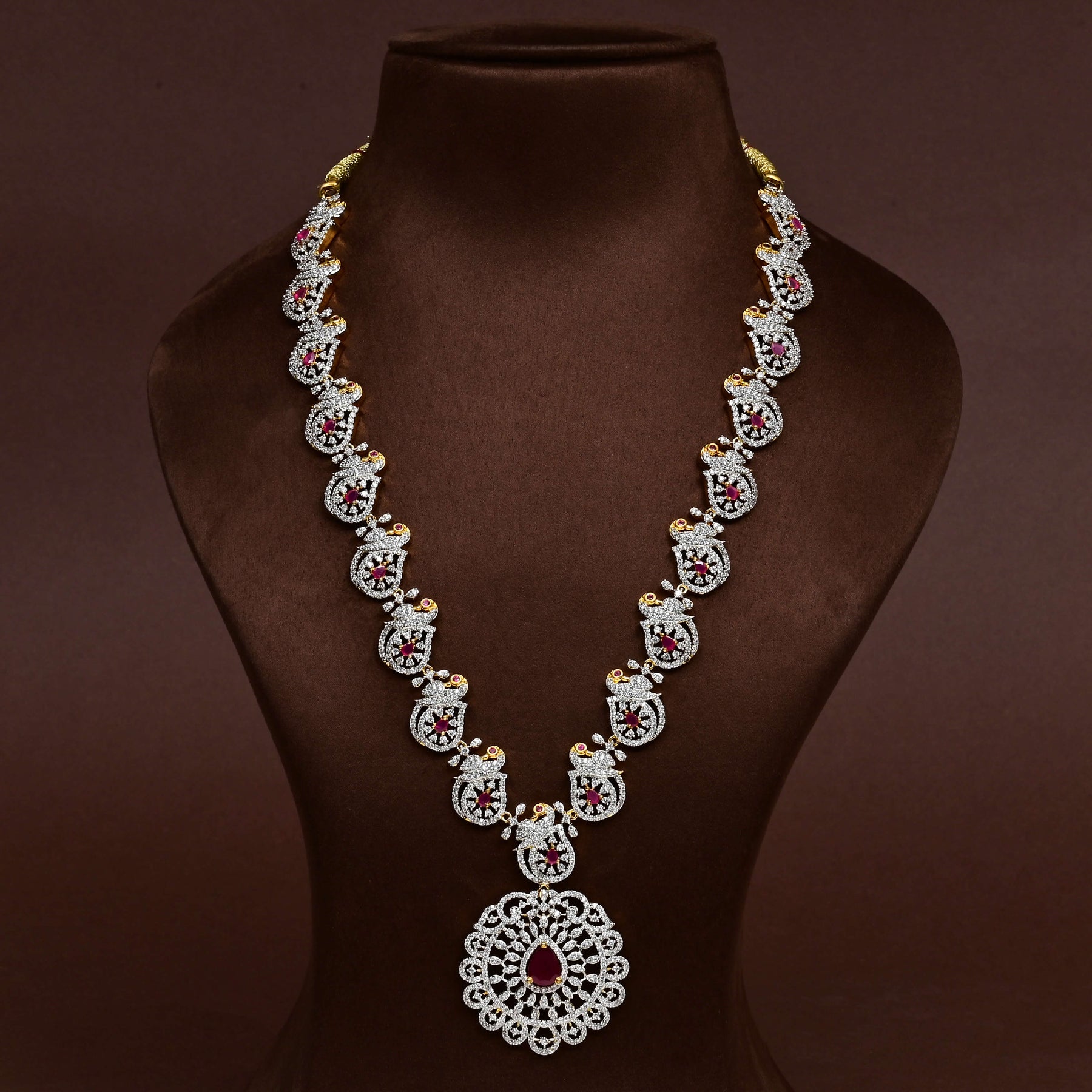 Elevate your collection with this exquisite CZ Necklace Set, meticulously handcrafted to deliver timeless elegance. Featuring brilliant diamond-finish cubic zirconia stones paired with semi-precious ruby accents, this piece captures the opulence of fine jewelry at an accessible price point. Each set showcases a distinctive one-of-a-kind design with royal aesthetics, making it an ideal choice for special occasions or everyday luxury. The expert craftsmanship ensures durability and lasting brilliance, while the sophisticated combination of materials creates a striking visual impact that complements any wardrobe.