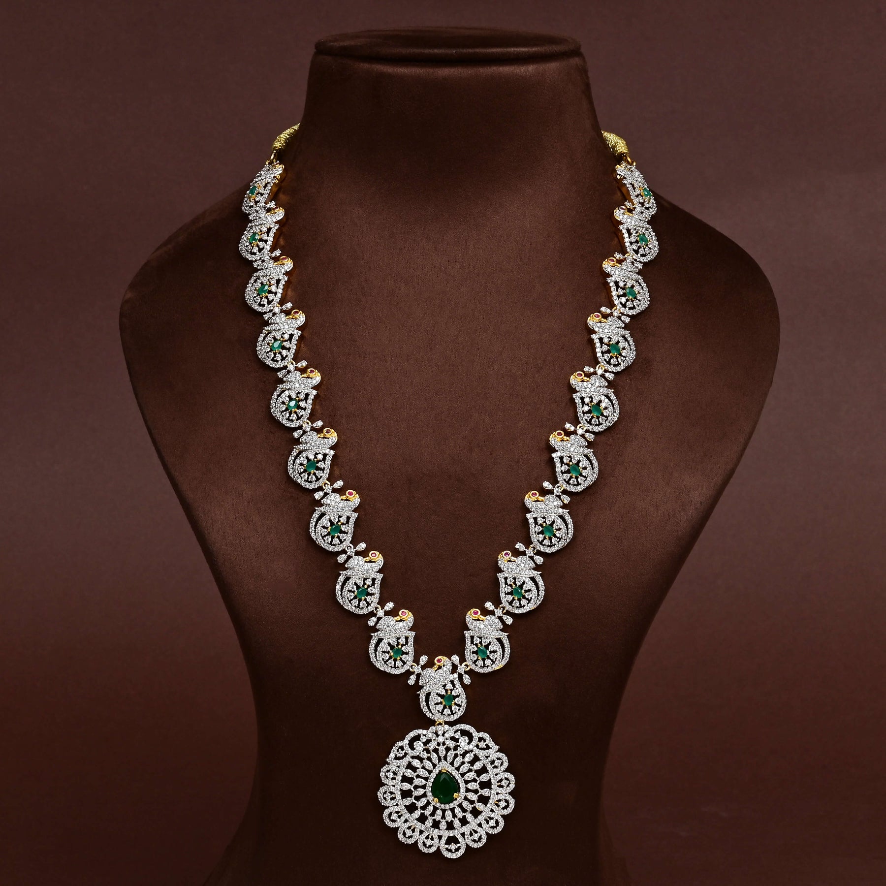 Elevate your collection with this exquisite CZ Necklace Set, meticulously handcrafted to deliver timeless elegance. Featuring authentic cubic zirconia stones in a brilliant diamond finish paired with semi-precious emerald accents, this set captures a regal aesthetic that commands attention. Each piece is individually designed, ensuring you own a truly distinctive creation. The expert craftsmanship and luxurious combination of materials make this necklace set an ideal choice for special occasions or as a statement accessory that transcends trends.