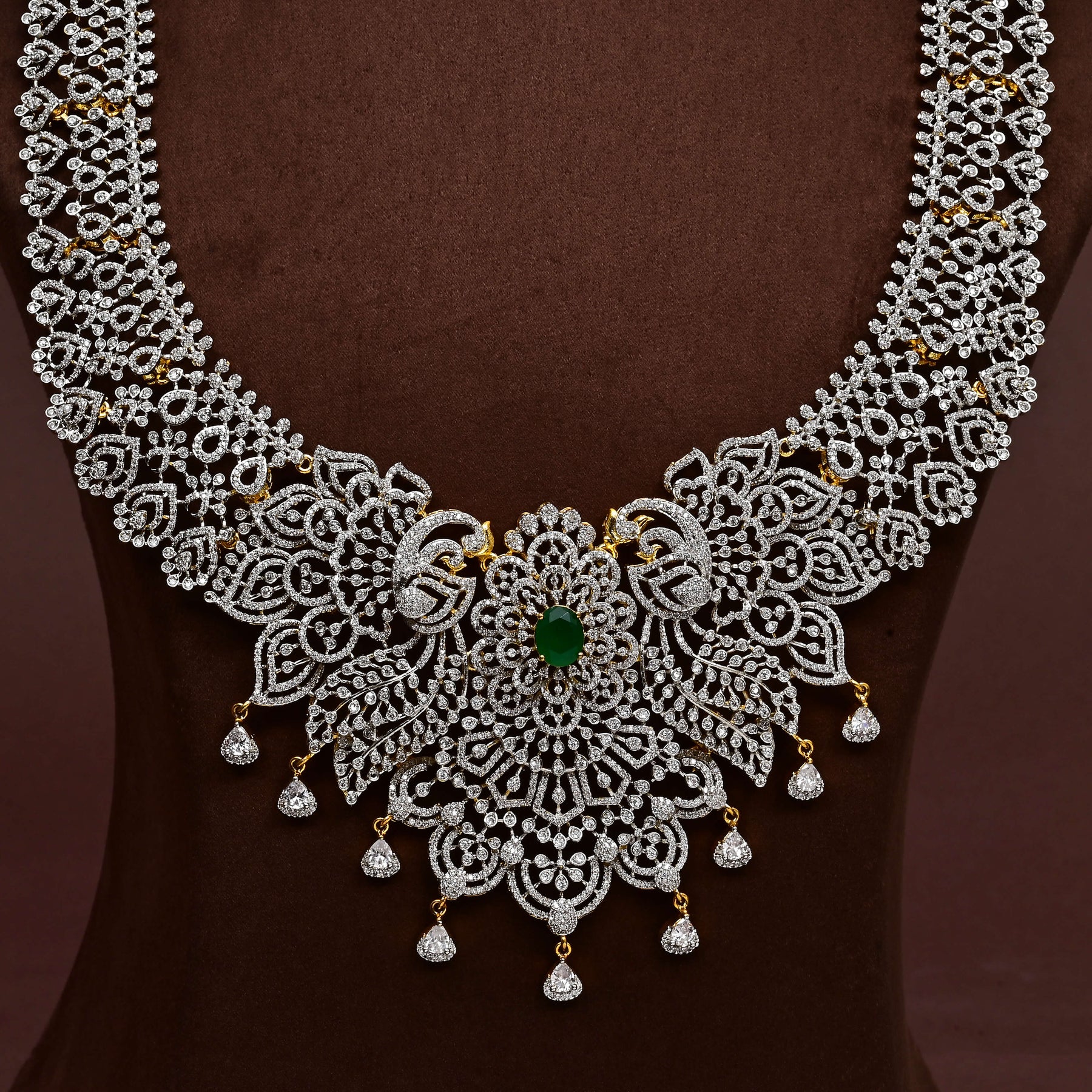Elevate your collection with this exquisite CZ Necklace Set, meticulously handcrafted to deliver timeless elegance. Featuring authentic cubic zirconia stones in a brilliant diamond finish paired with semi-precious emerald accents, this piece combines sophistication with distinctive artistry. Each necklace is individually designed, ensuring you own a truly one-of-a-kind creation. The refined craftsmanship and luxurious stone combination make this set an ideal choice for special occasions or everyday refinement. Experience jewelry that reflects both quality and uniqueness.