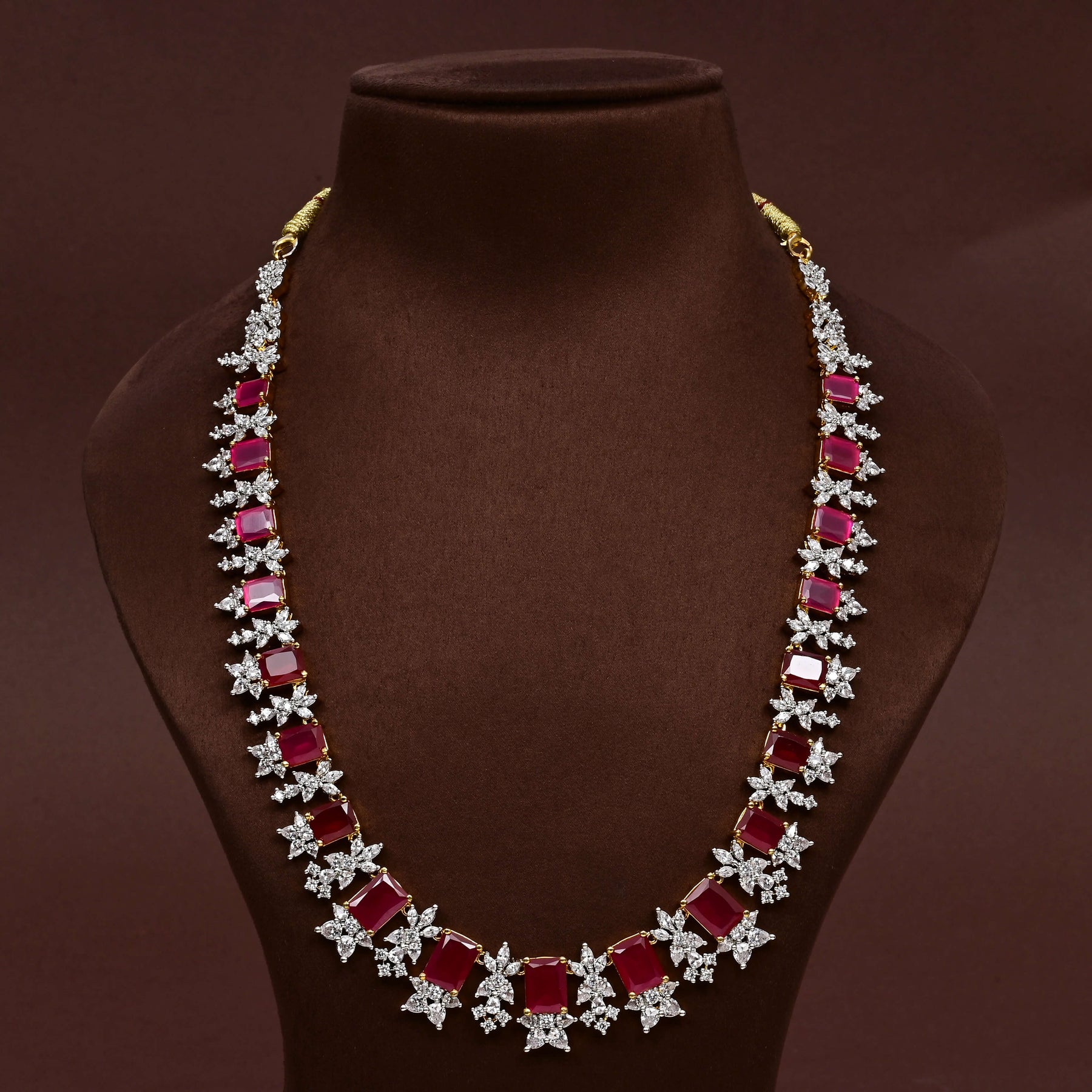 Elevate your jewellery collection with this exquisite CZ Necklace Set, meticulously handcrafted to showcase timeless elegance. Featuring authentic cubic zirconia stones in a brilliant diamond finish paired with genuine semi-precious ruby accents, this set delivers sophisticated sparkle with authentic gemstone beauty. Each piece is individually crafted with meticulous attention to detail, ensuring a truly one-of-a-kind design that stands apart from mass-produced alternatives. The refined aesthetic makes it ideal for both special occasions and elevated everyday wear, offering versatile styling that complements any wardrobe. Experience the perfect balance of luxury and craftsmanship in a necklace set designed for those who appreciate distinctive, high-quality jewellery.