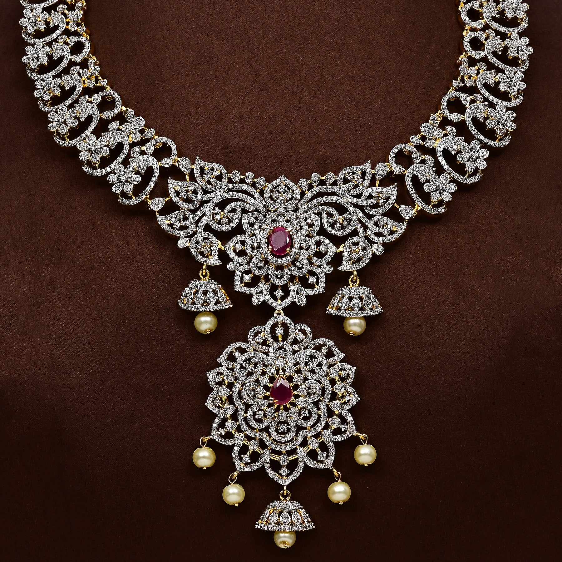 Elevate your jewellery collection with this exquisite CZ Necklace Set, meticulously handcrafted to deliver timeless elegance. Featuring authentic cubic zirconia stones in a brilliant diamond finish paired with semi-precious ruby accents, this piece combines sophistication with distinctive artistry. Each necklace showcases a one-of-a-kind design that reflects superior craftsmanship and refined taste. Perfect for special occasions or everyday luxury, this set offers the radiance of fine jewellery with an exclusive aesthetic that sets you apart.