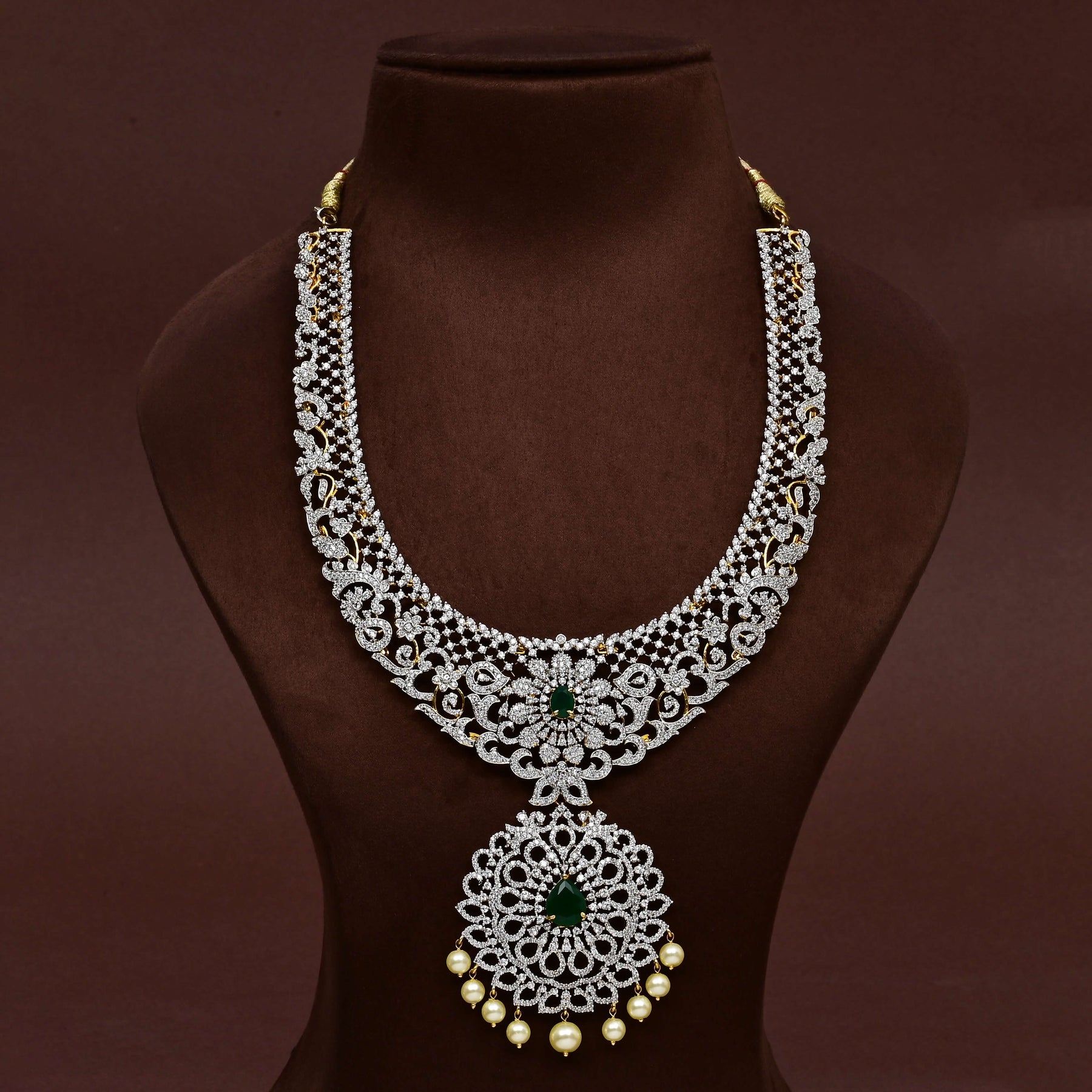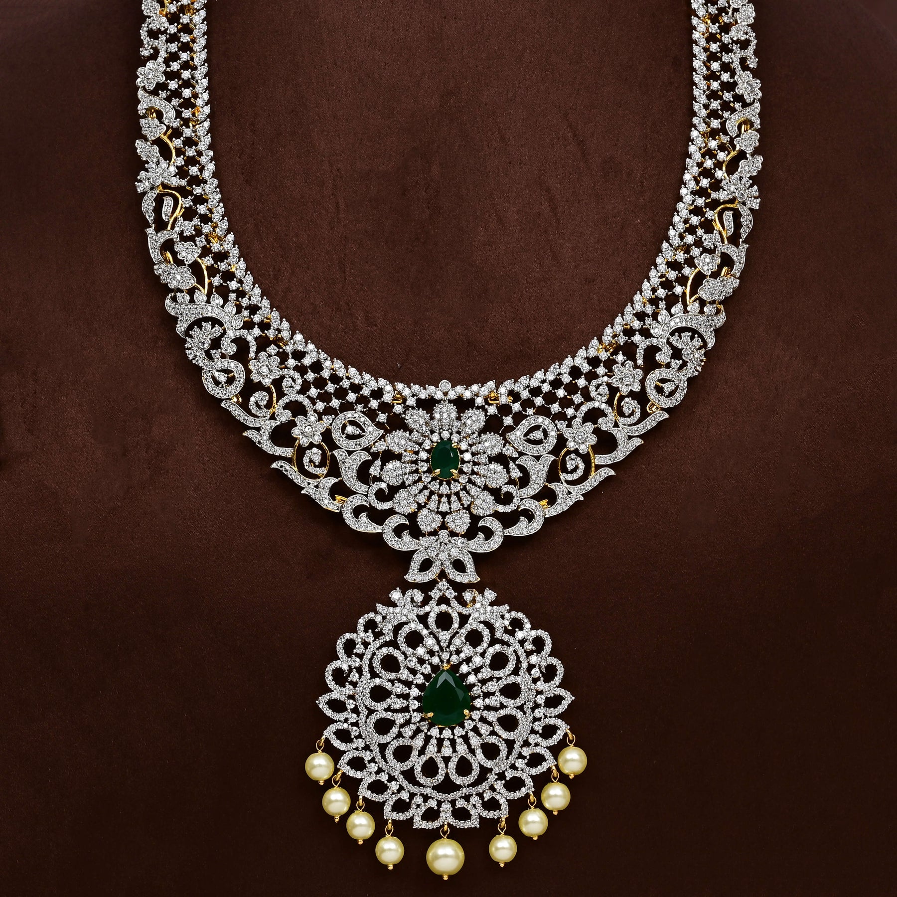 Elevate your jewellery collection with this exquisite CZ Necklace Set, meticulously handcrafted to showcase timeless elegance. Featuring authentic cubic zirconia stones in a brilliant diamond finish paired with genuine semi-precious emeralds, this set delivers sophisticated sparkle and rich colour. Each piece is individually designed, ensuring you own a truly distinctive accessory that stands apart. The expert craftsmanship creates a refined aesthetic perfect for both special occasions and elevated everyday wear. A versatile investment in classic beauty that transcends trends.